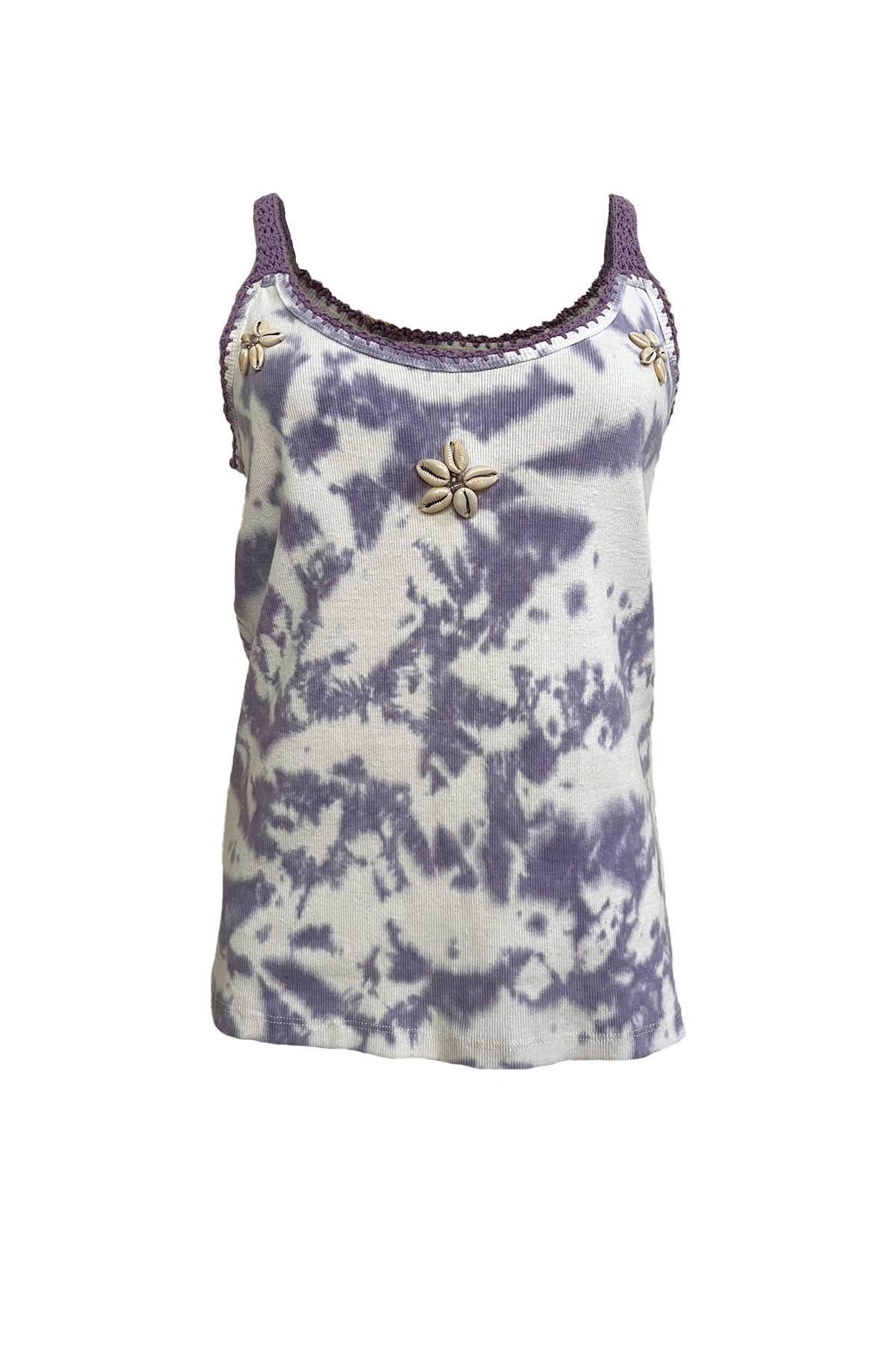 -50% Quick view Add to cart HEYSHA Top Regular price €145.00 -50% Price €72.50 Tie&dye and shell tank top . Round neckline . Embroidered crochet straps . Neckline and armhole embroidery . Embroidered shells and...