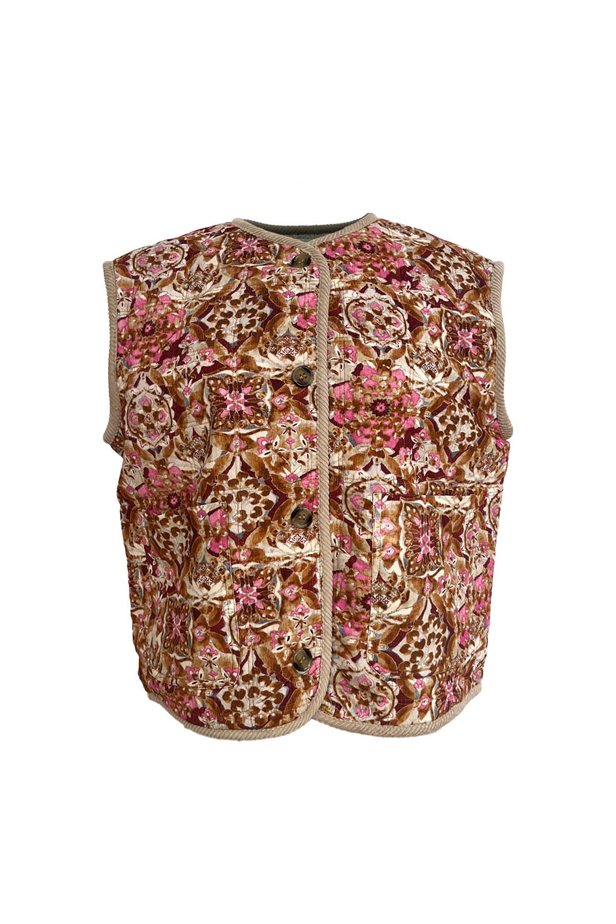Quick view Add to cart LILLA Jacket Price €250.00 Quilted sleeveless jacket with pattern . Loose fit . Round neckline . Button fastening at the front . Contrast piping around the edges ....