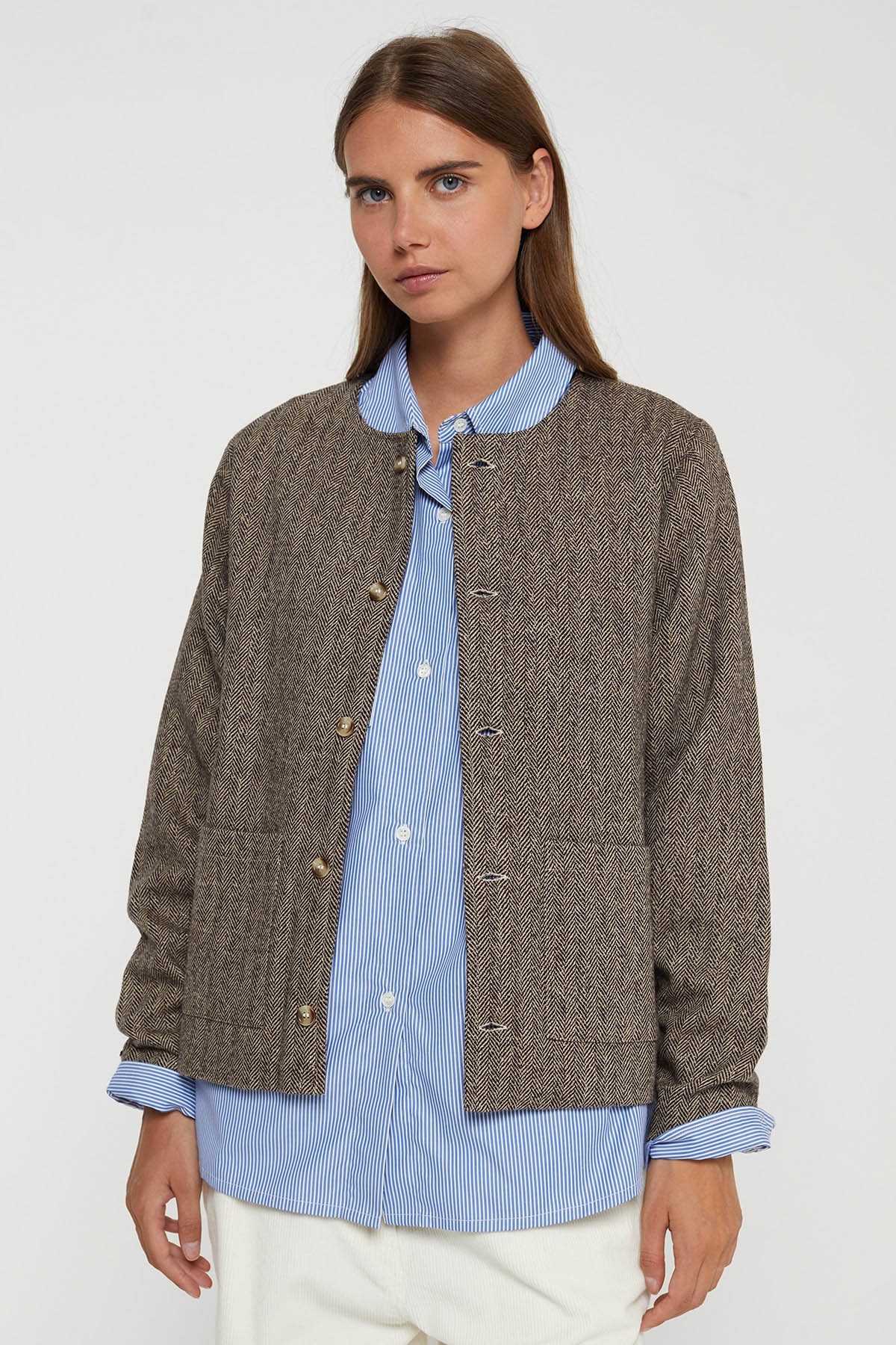-60% Quick view Add to cart ZAIDA Jacket Regular price €240.00 -60% Price €96.00 Wool blend jacket . Straight cut . Round neckline . Long sleeves . Button front closure . Patch pockets . Houndstooth pattern...