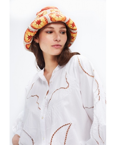 Fusing the bohemian charm of crochet with the nineties aesthetic of the bob, it is the ultimate trend of the season. The Flowers bob is distinguished by its bright colours and embroidered flowers.