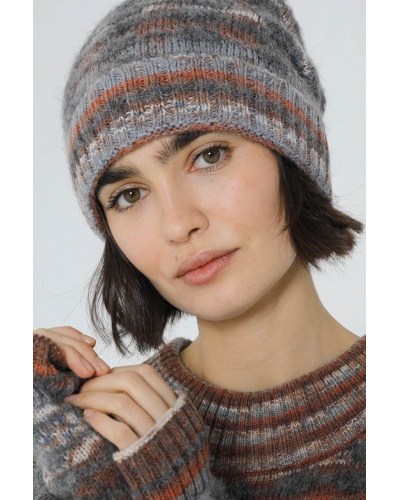 The Ewa alpaca hat is the perfect winter accessory for facing the cold in style. Its shades of grey and brown blend add a touch of winter elegance to your outfit, while its alpaca fabric offers unrivalled softness.