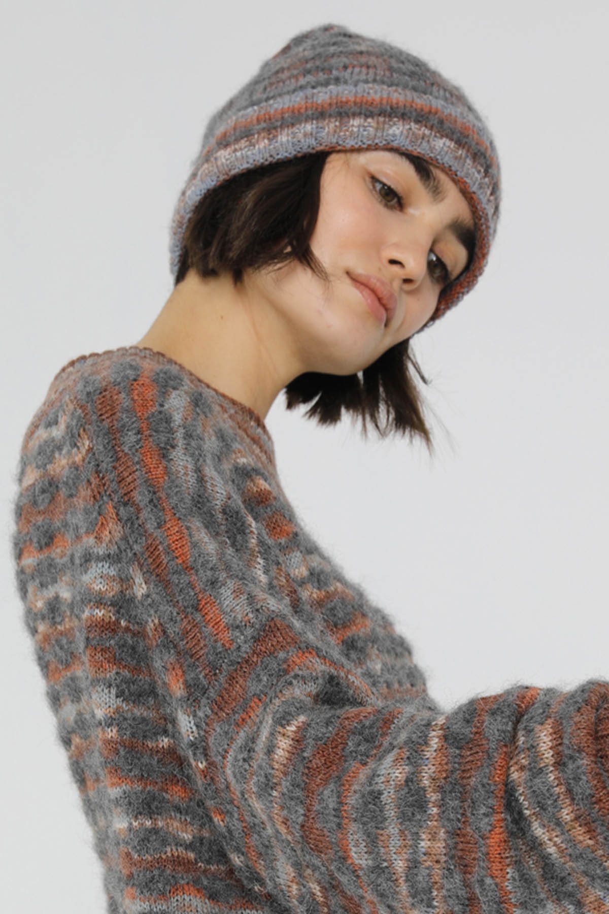 Grey and brown knitted hat
