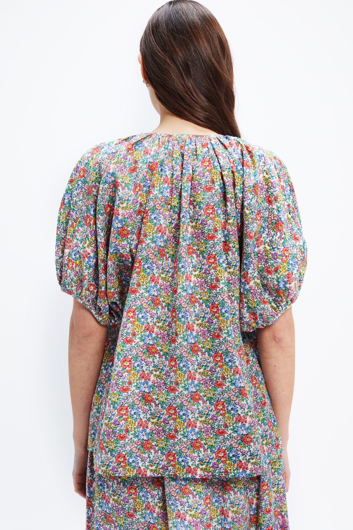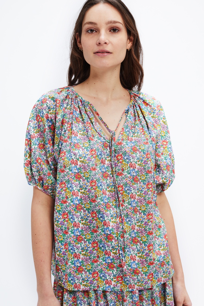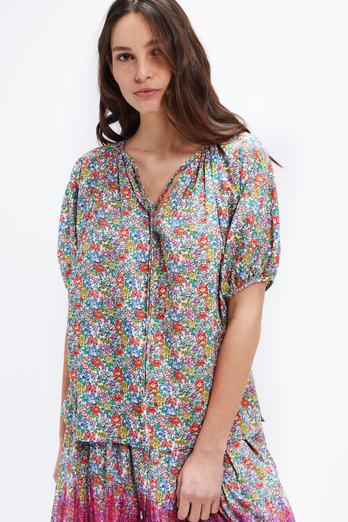 The Baggy blouse in light cotton voile is distinguished by its floral prints in summer colors. A model all in freshness, to slip into jeans for a look both casual and romantic.