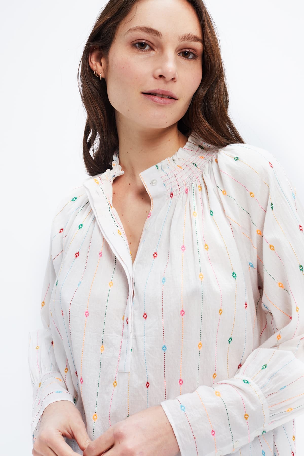 search Quick view Add to cart Remove from Wishlist Add to Wishlist NIKITA Blouse Price €140.00 Gold lurex blouse Straight cut . V-neck . Long sleeves . Rounded hem . Longer at the back than at the front Choose your usual size