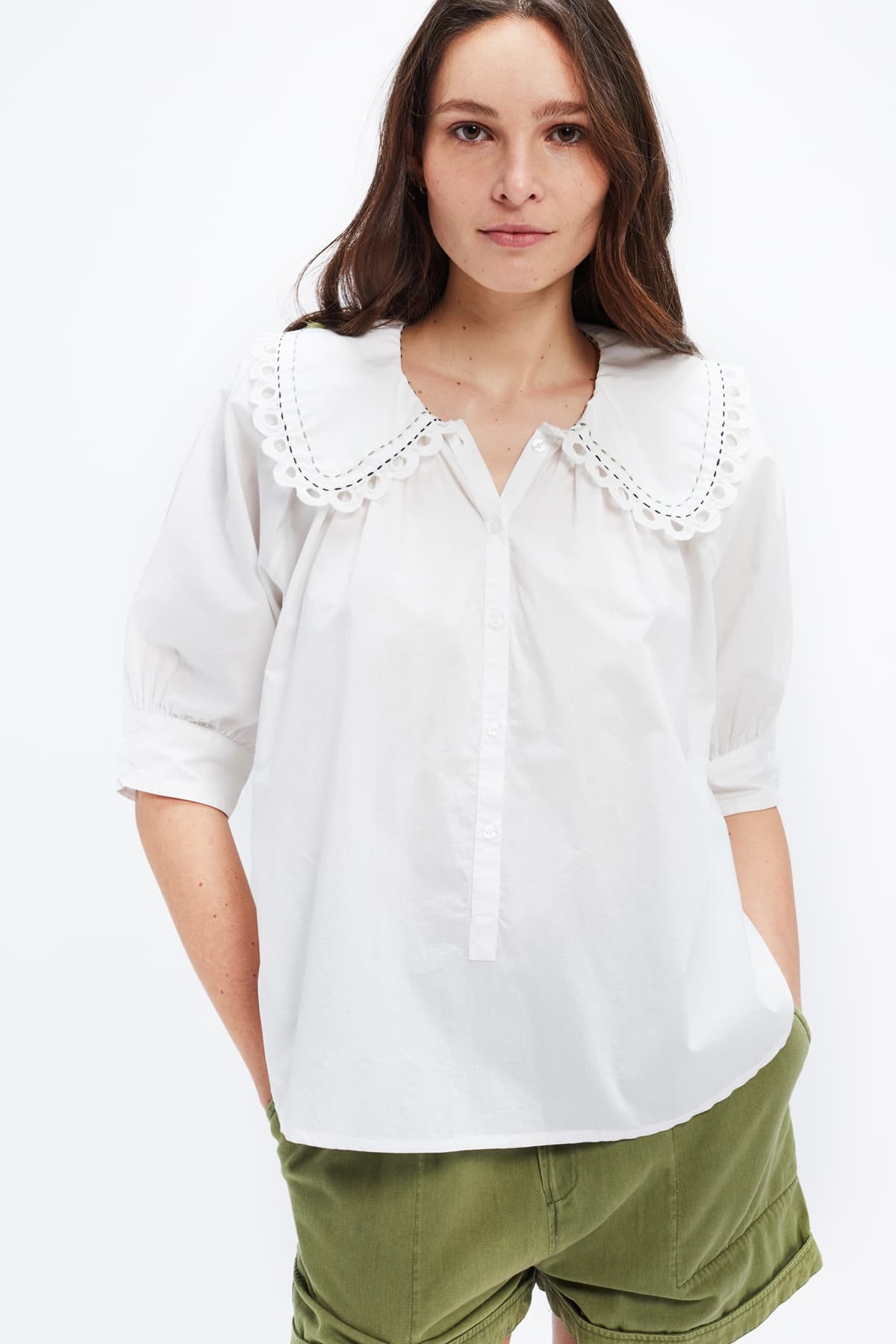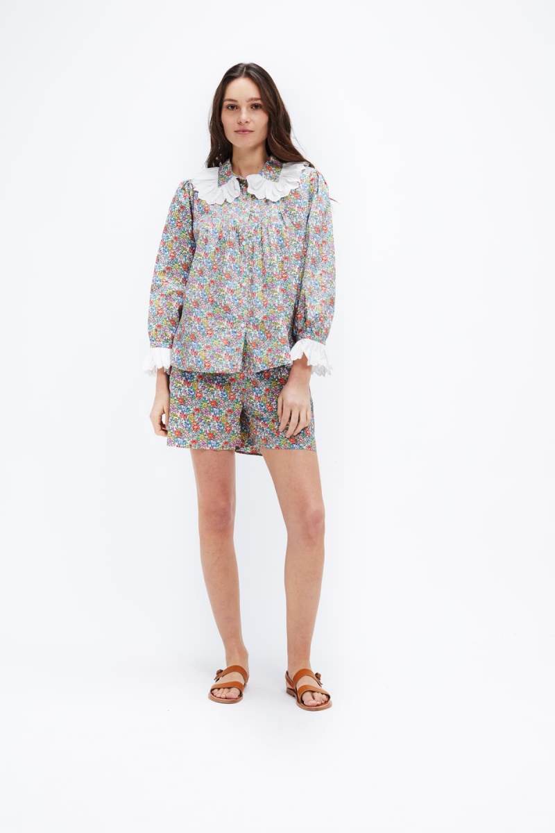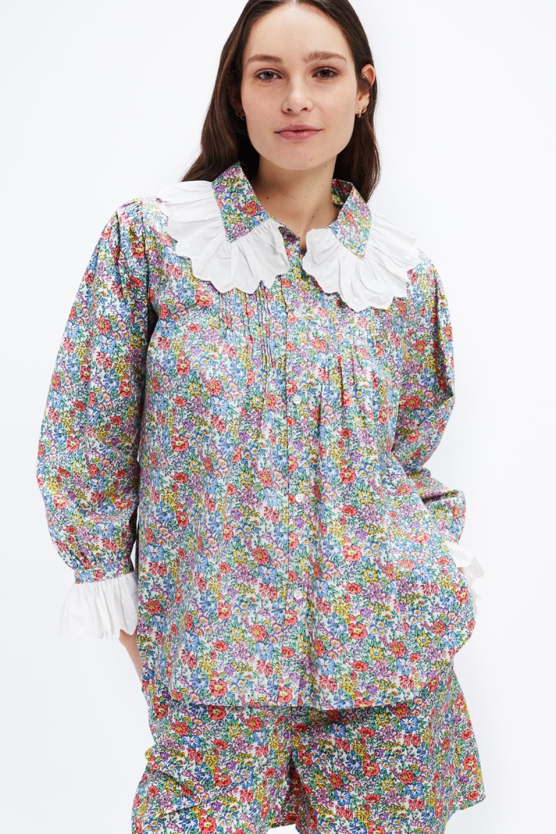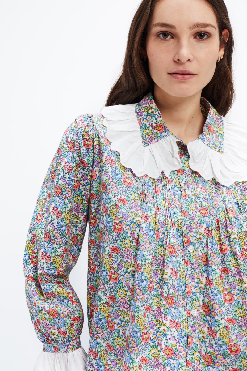 This romantic shirt has a claudine collar and a liberty print. Slip it into your favourite jeans.