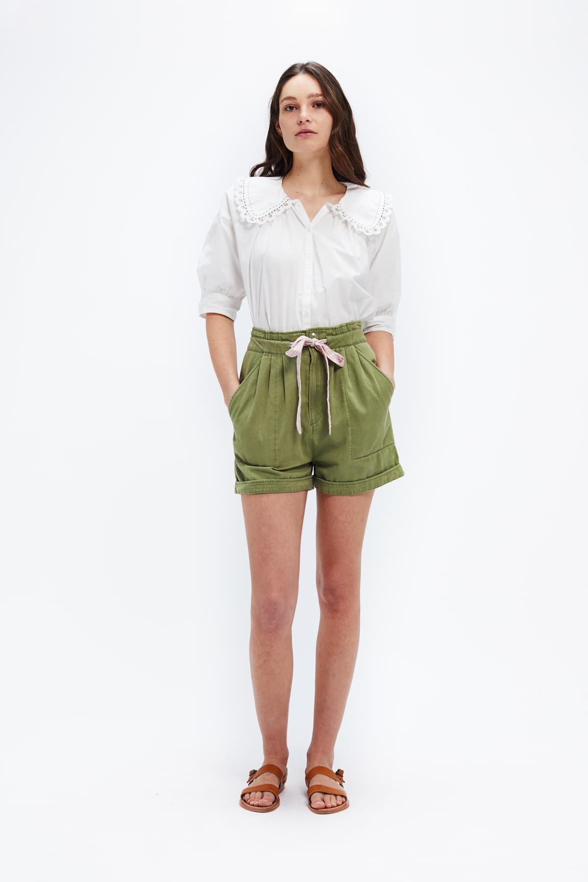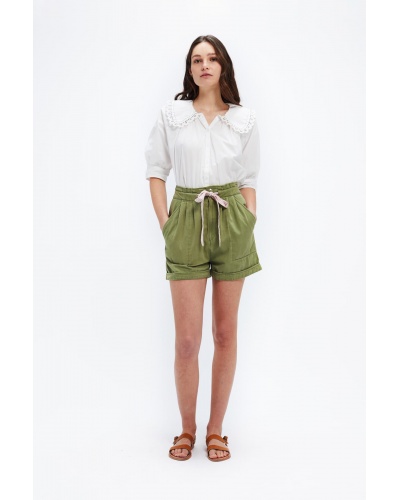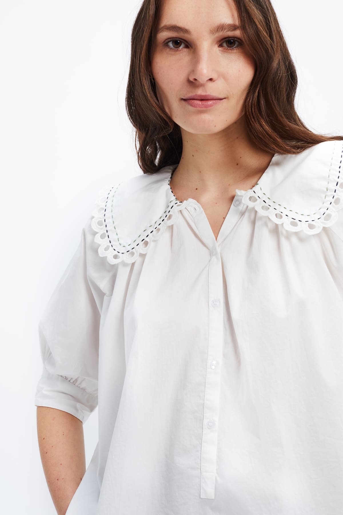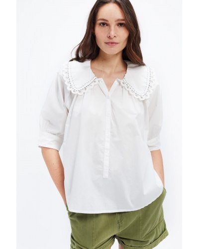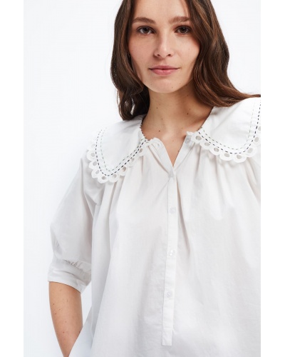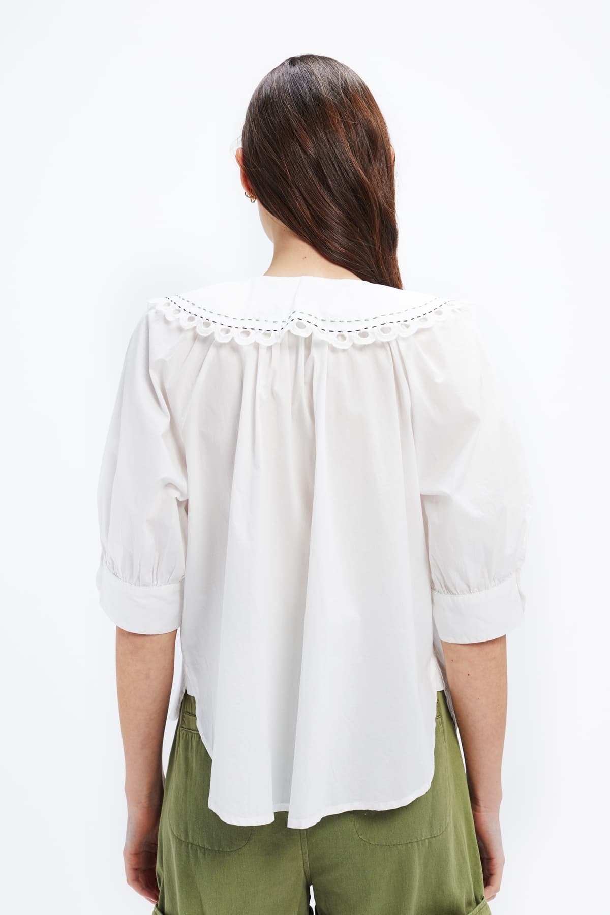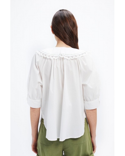 With it's romantic look, this white blouse features an elaborate cowl neck and puffed sleeves. Slip it into your favourite jeans.