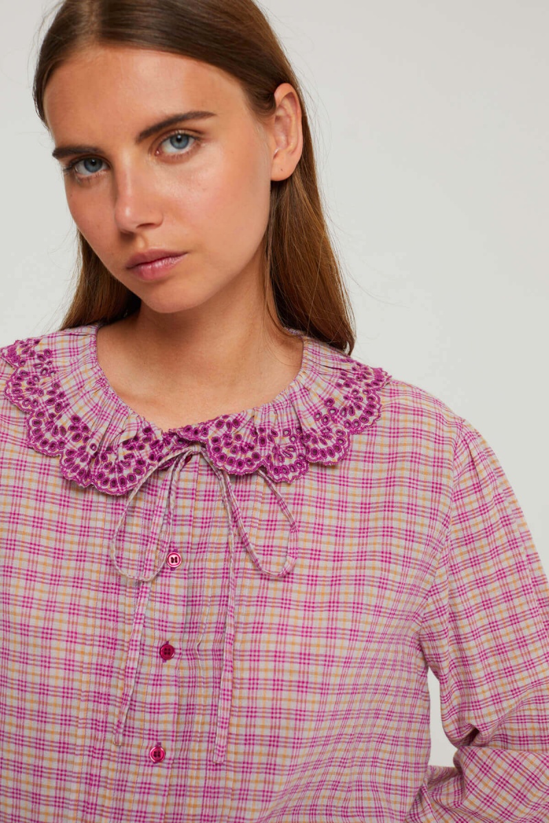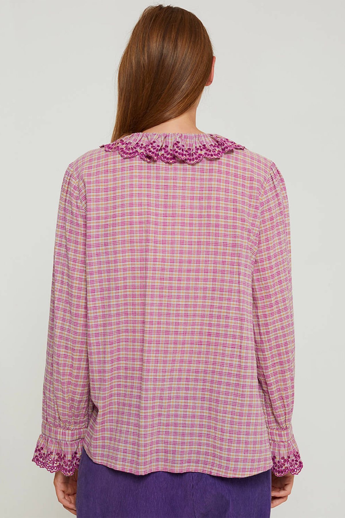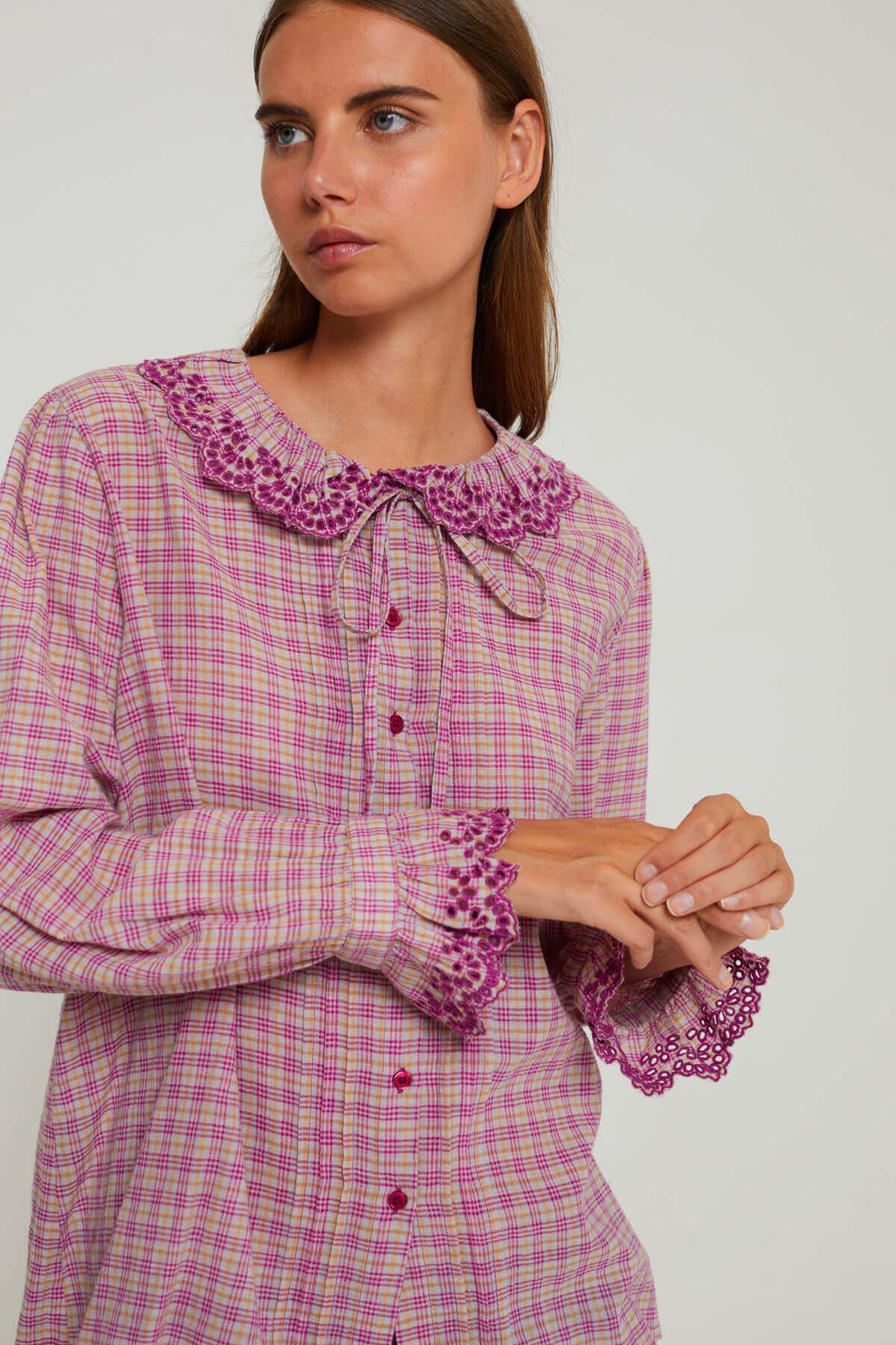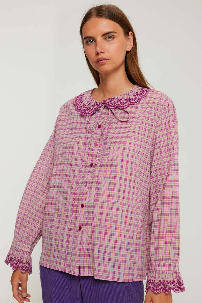 The elegant, feminine Anoushka shirt adds a touch of charm to your wardrobe. Pink check, it's carefully crafted from handloom cotton, offering exceptional comfort and durability. It's perfect for outings with friends, days at the office or even a romantic evening.