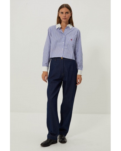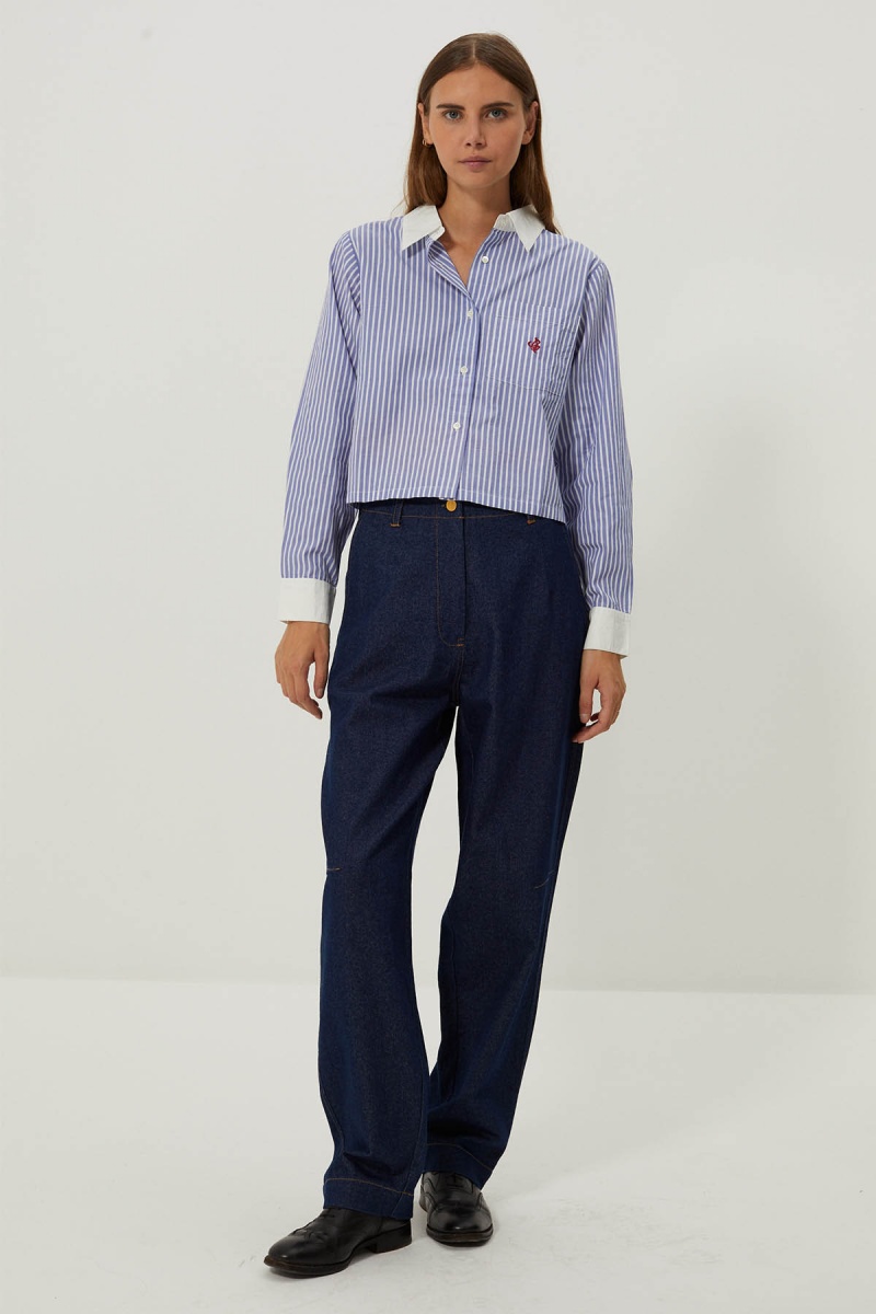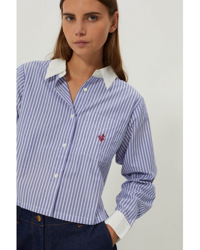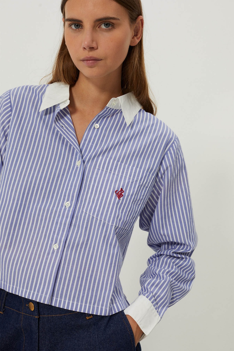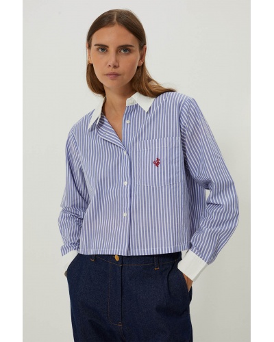 The Levita shirt is a bold piece that embodies the perfect blend of classic stripe styling and a contemporary touch with its short effect design. This two-tone shirt offers a unique aesthetic, accentuated by the initials "CJ" embroidered on the chest pocket. Wear it for casual outings with friends, nights out on the town or to add a unique touch to your office attire.