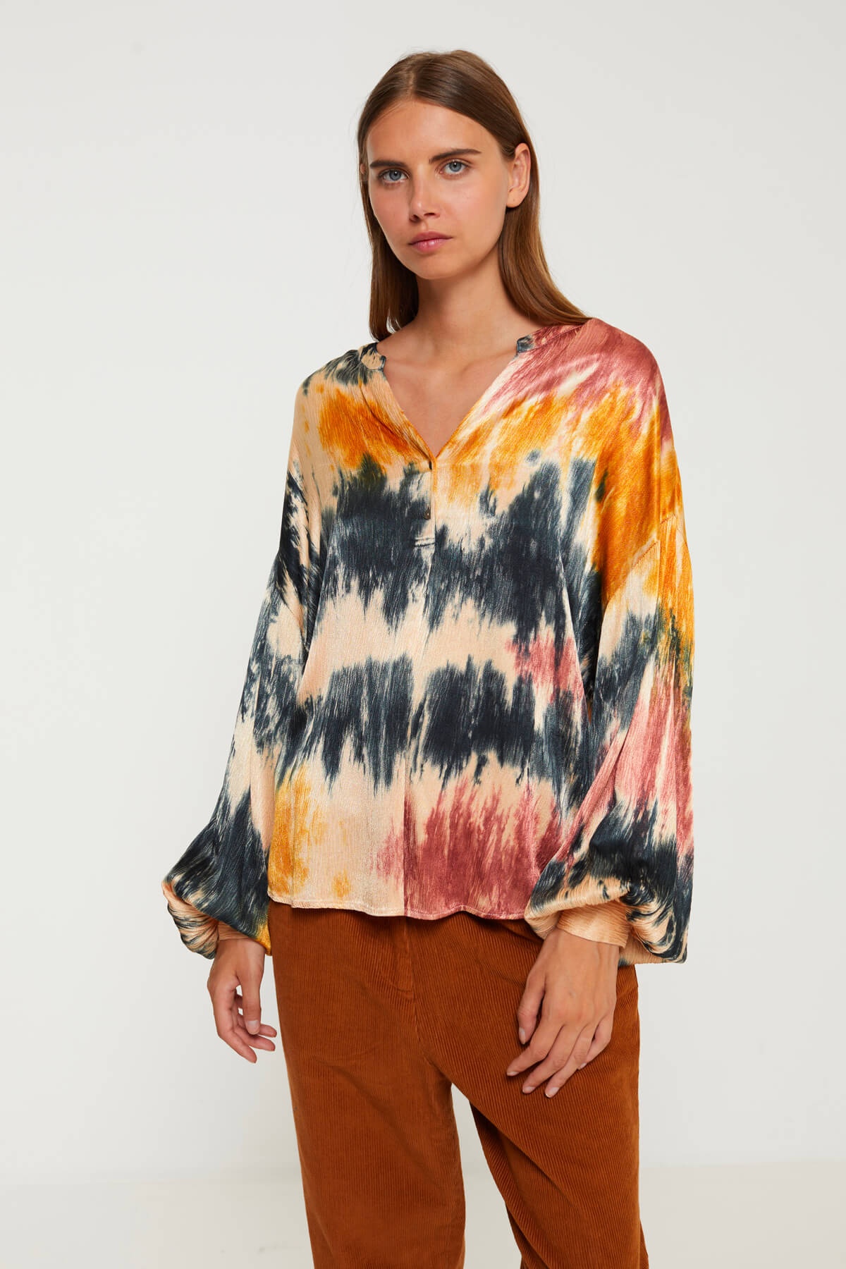 The stand-up collar on the Shym blouse adds a touch of elegance to your look, this chic detail enhances your silhouette while adding a modern, sophisticated touch.
