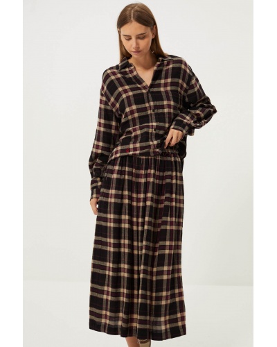For a perfectly coordinated look, pair the Toscan shirt with the Siria checked skirt, or opt for raw black denim for a modern, elegant touch.