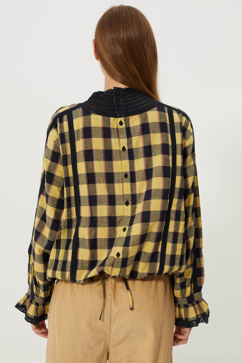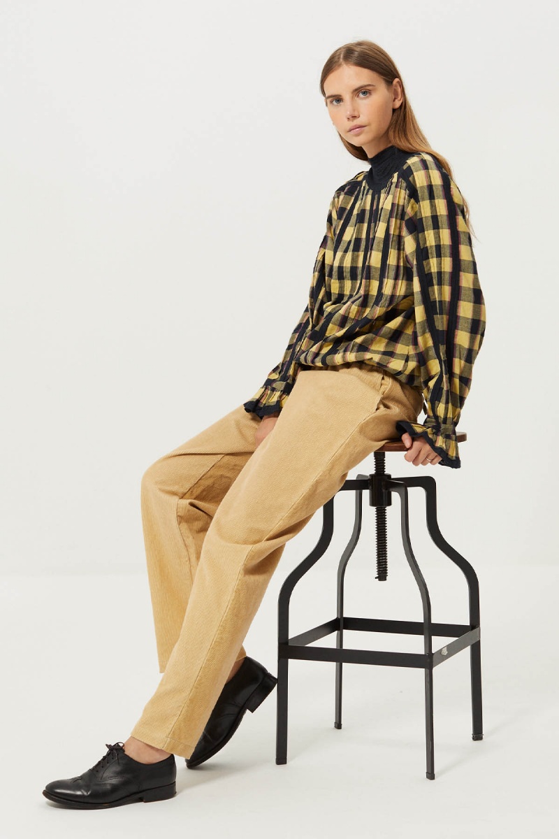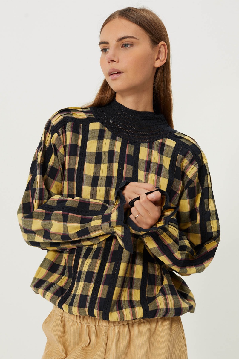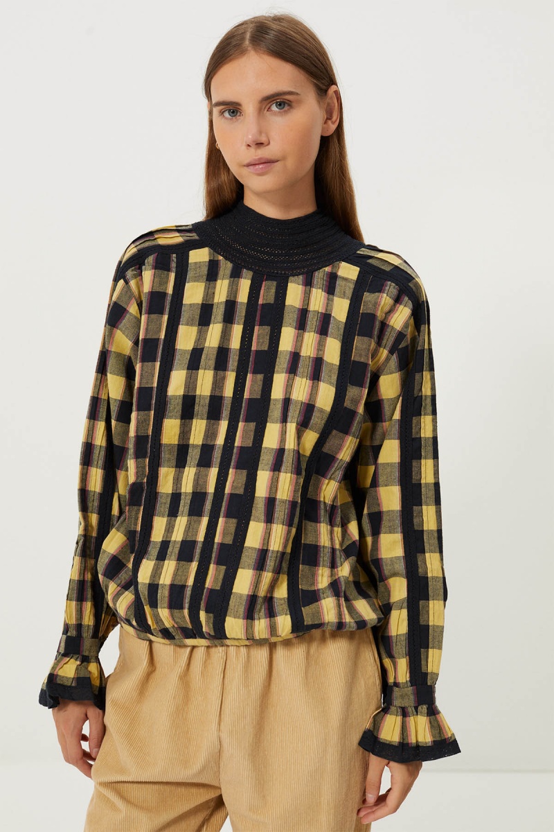 Add a touch of originality to your wardrobe with the Sesta top, a check pattern in autumnal colours.