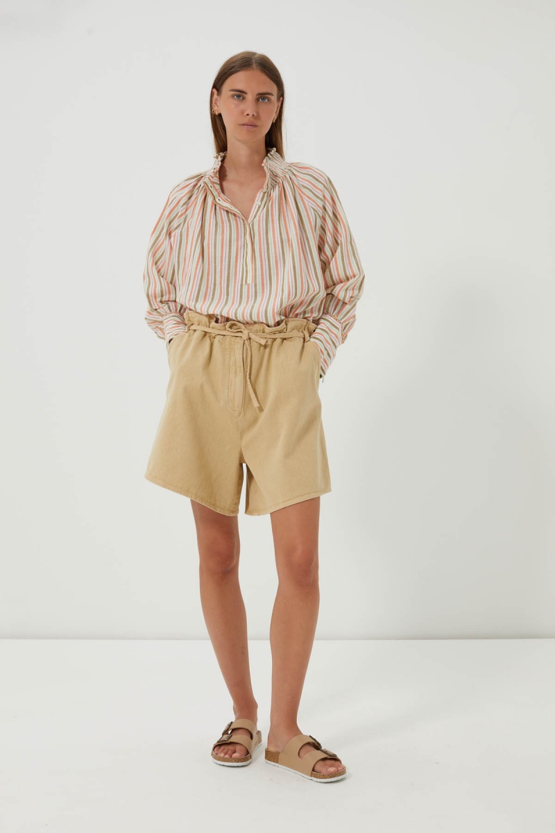 Chic and casual, the Ingrid blouse revisits everyday elegance. An emblematic cut from our previous collections, it is reinterpreted this season with subtle embroidery on the cuffs and a new play of colours.