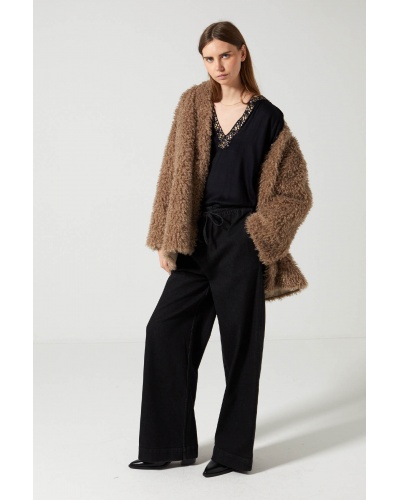 Its slightly puffed long sleeves and supple drape create an elegant and comfortable silhouette, ideal for enhancing both your everyday looks and your more formal outfits.