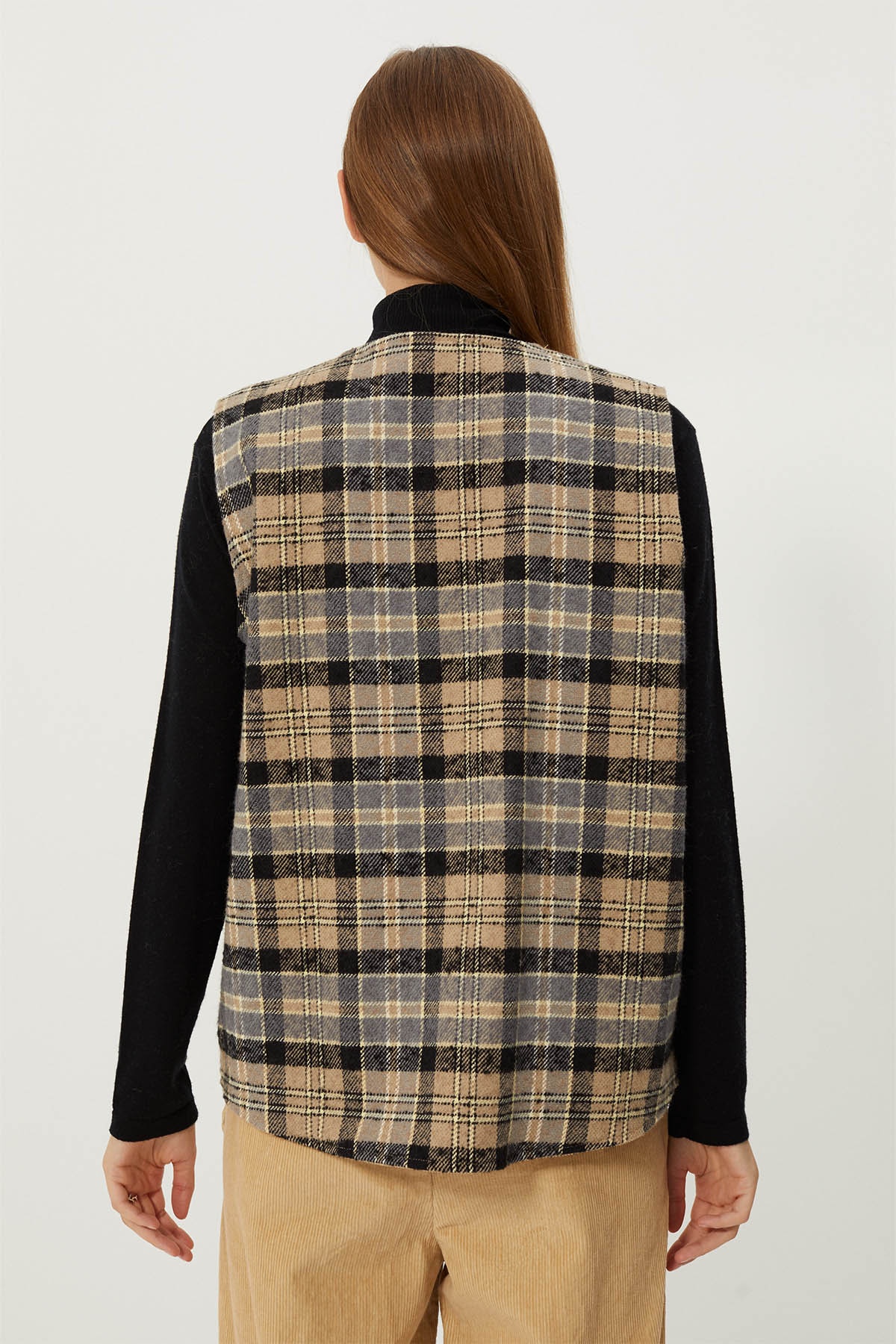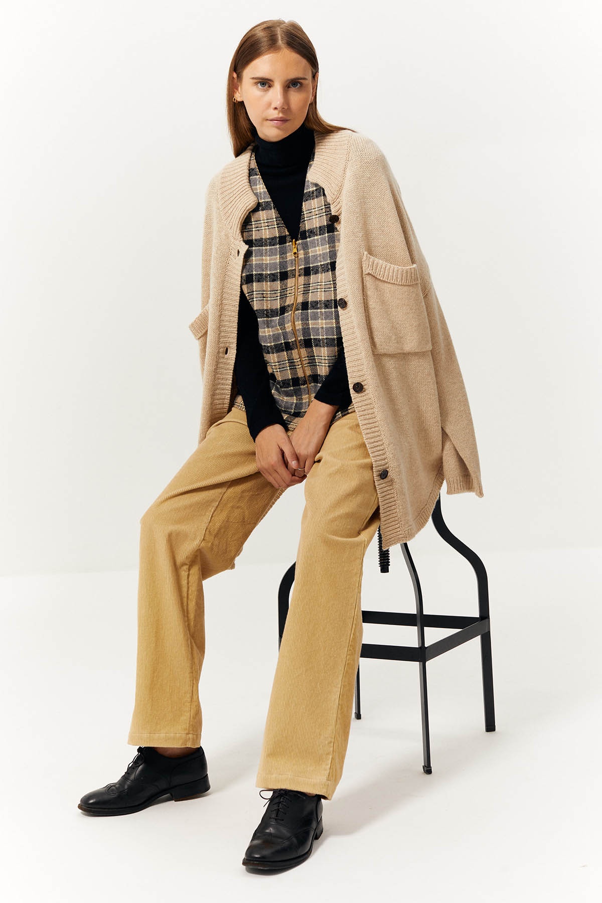Adopt the reversible Afra jacket for chic, functional style this season. Designed to give you two looks in one, this jacket has a beige corduroy side for a sober, elegant look, and a check patterned side for a more casual, on-trend style.