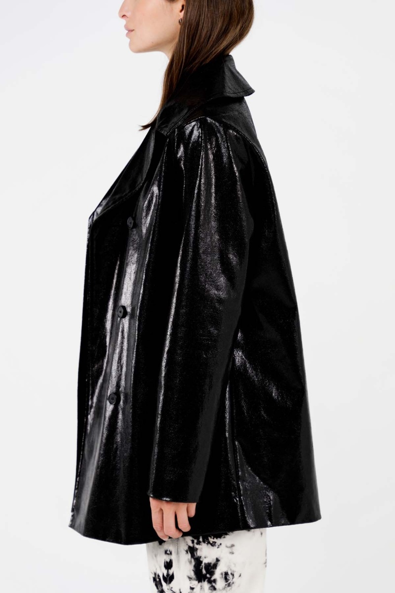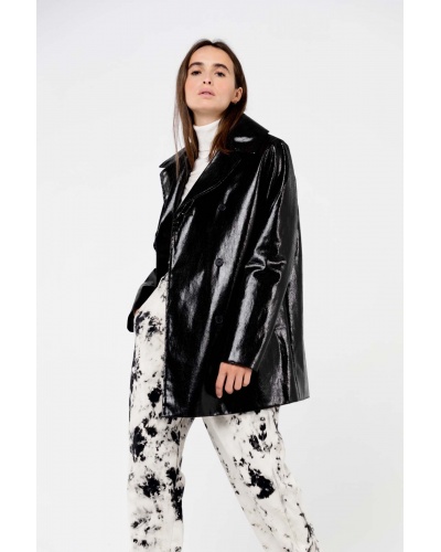 The Livio jacket is the combination of the rock side of vinyl fabric and the elegance of a straight cut and a tailored collar.