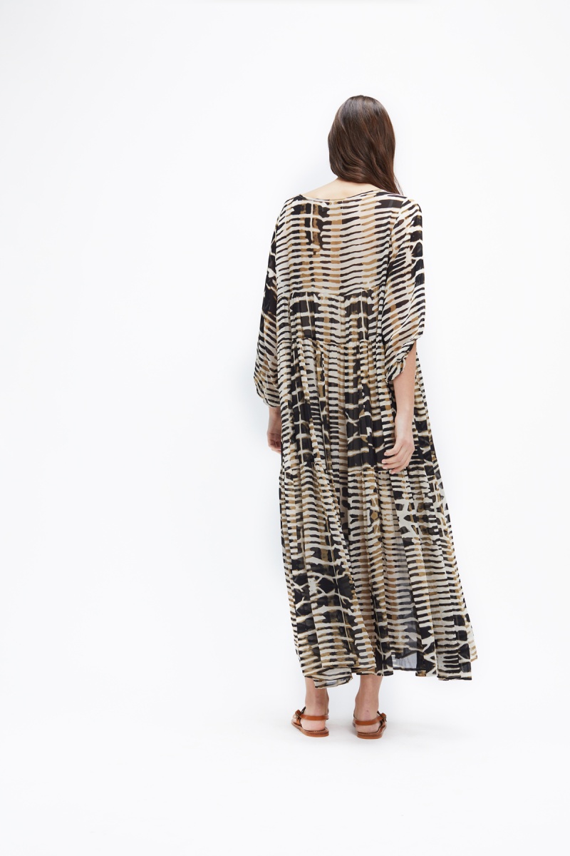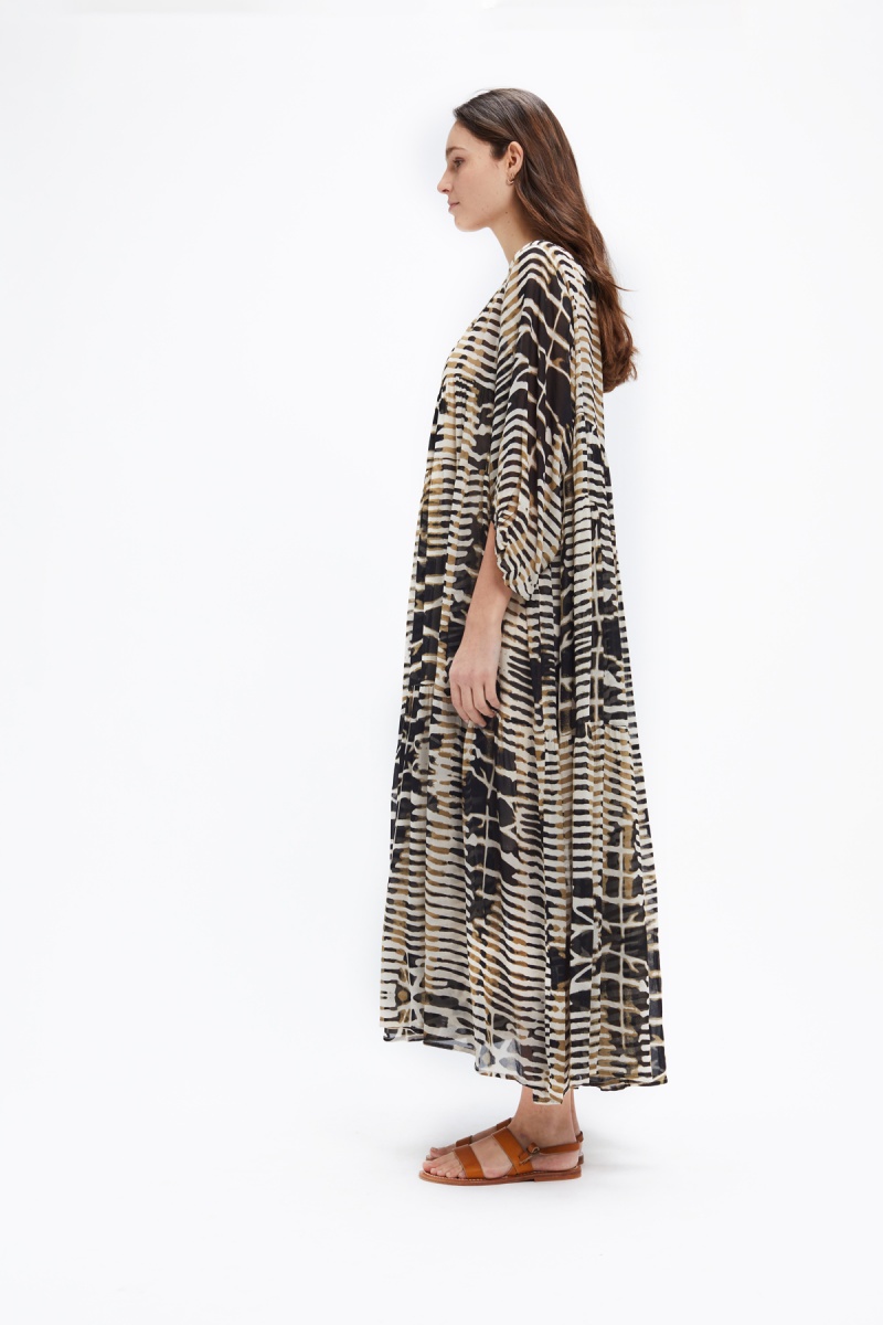 Light and airy, the Roma dress is distinguished by its zebra print. Its fluidity can suit all body types. Add to it braided sandals and a basket.