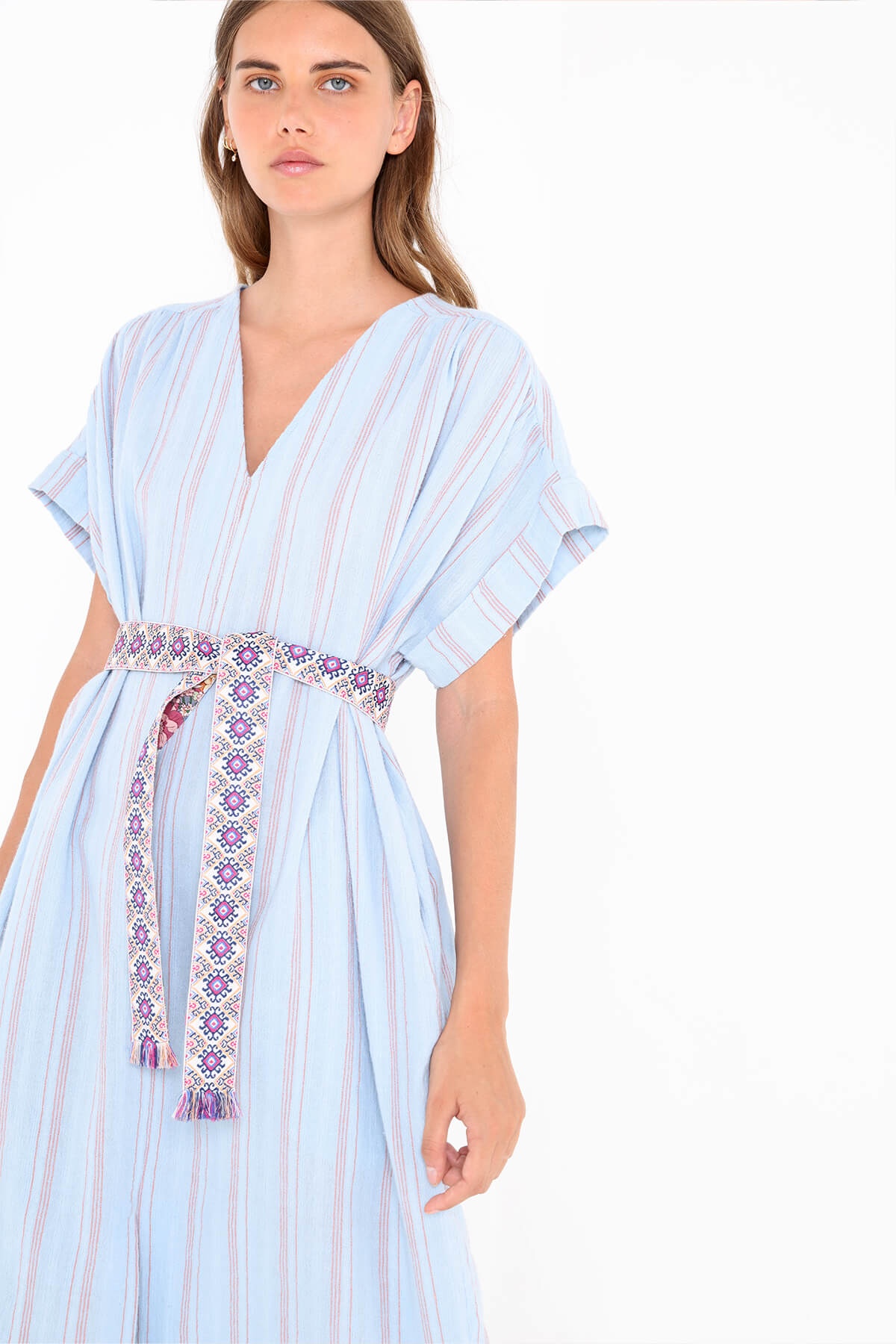 search Quick view Add to cart Remove from Wishlist Add to Wishlist DANAE Dress Price €265.00 Long dress in metallic lurex . Loose fit . Tie-neck V-neck . Long sleeves . Wide buttoned cuffs . Gathered waist . Slanted pockets ....