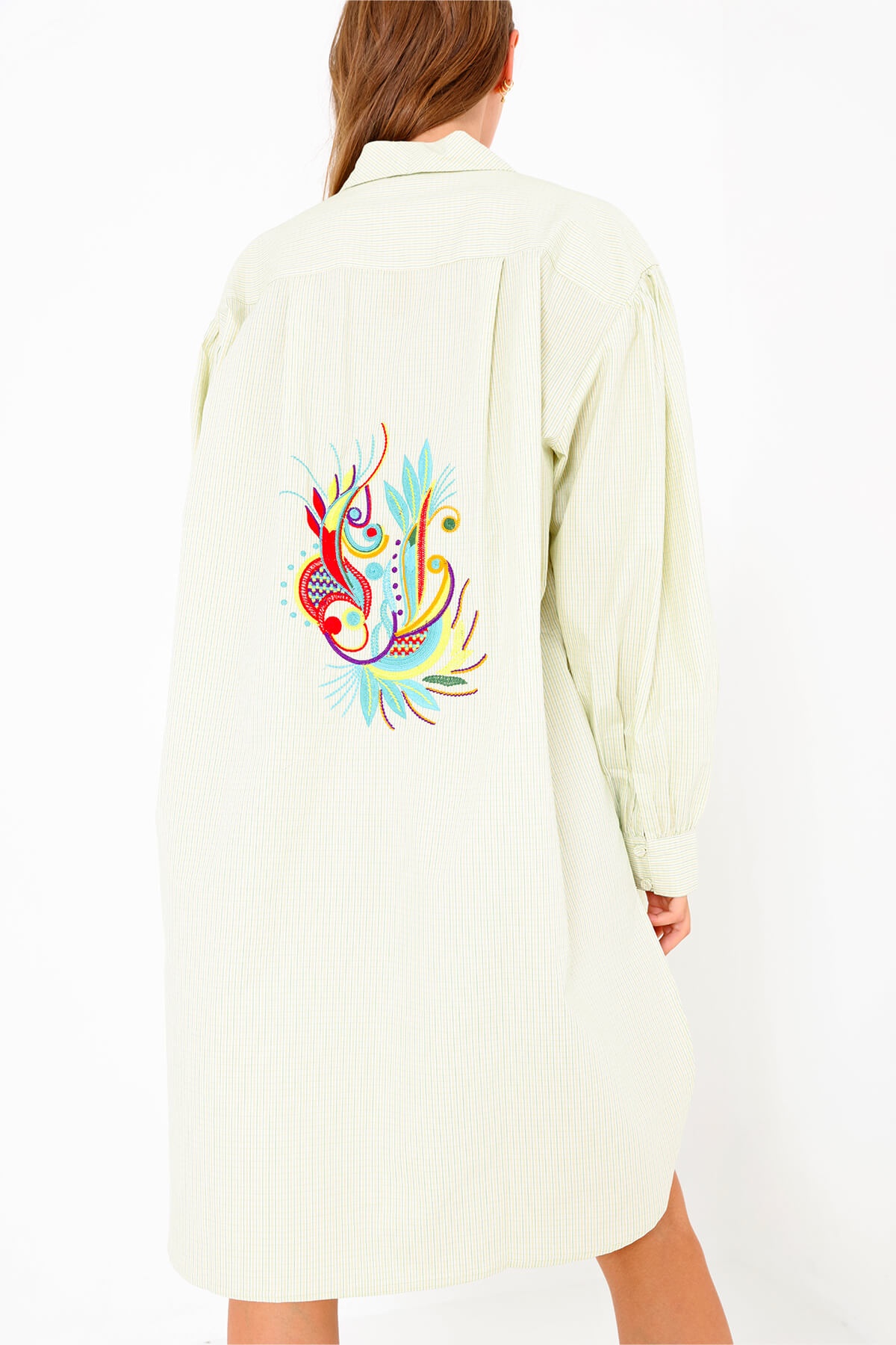 . Coloured embroidery on the back