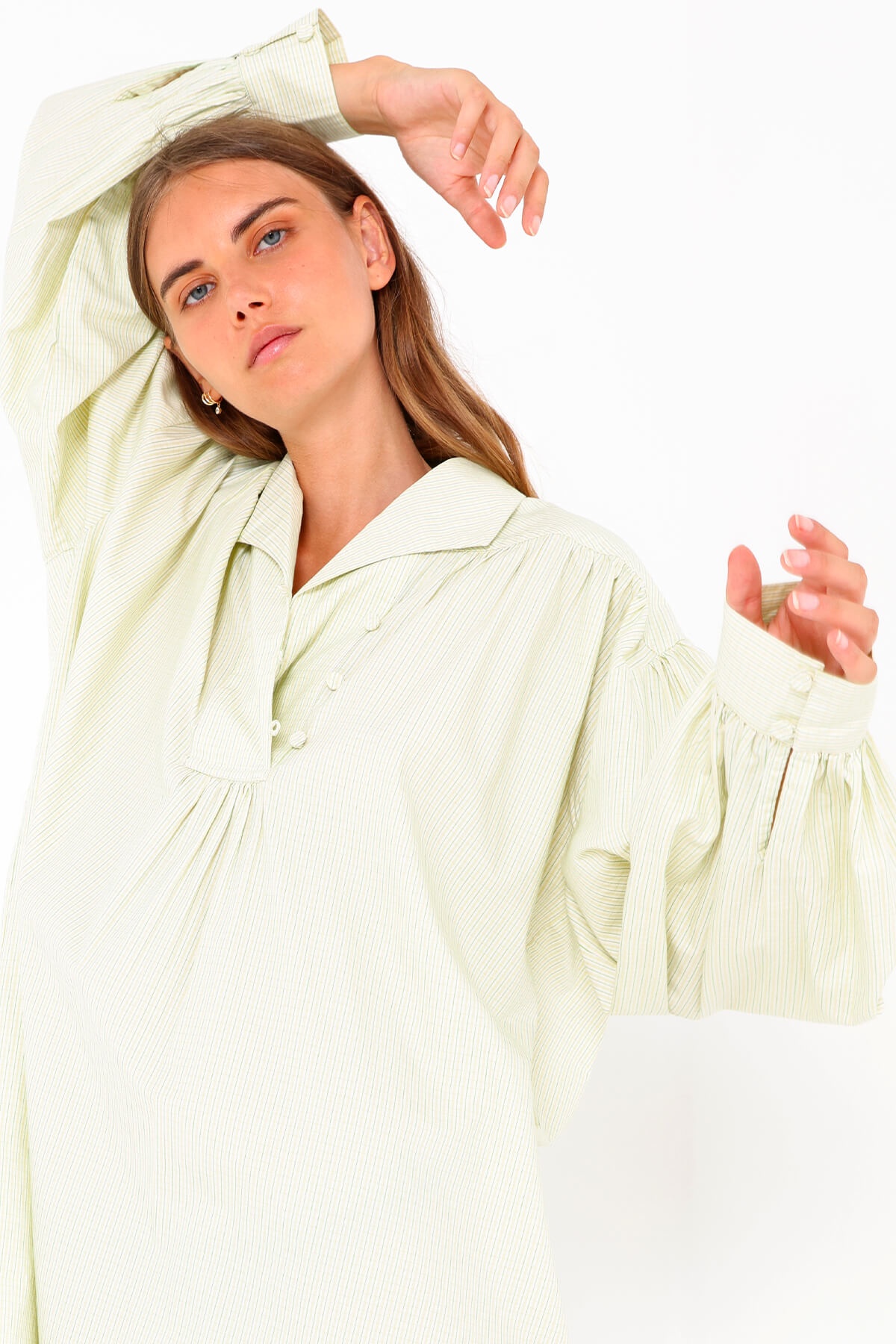 Discover without further delay our Agda shirt dress. It can be worn alone or with the Ami trousers of the same design. The soft colour of the dress is enhanced by its embroidery to make it a unique and original piece.