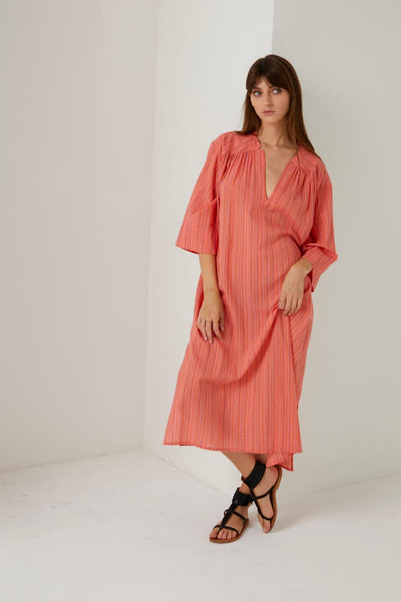 Discover our new Solange dress with summer colours. Made of light cotton, it is perfect for the season, allowing the body to breathe. It can be worn in the city as well as on the beach, depending on your style.