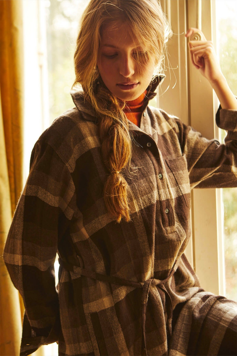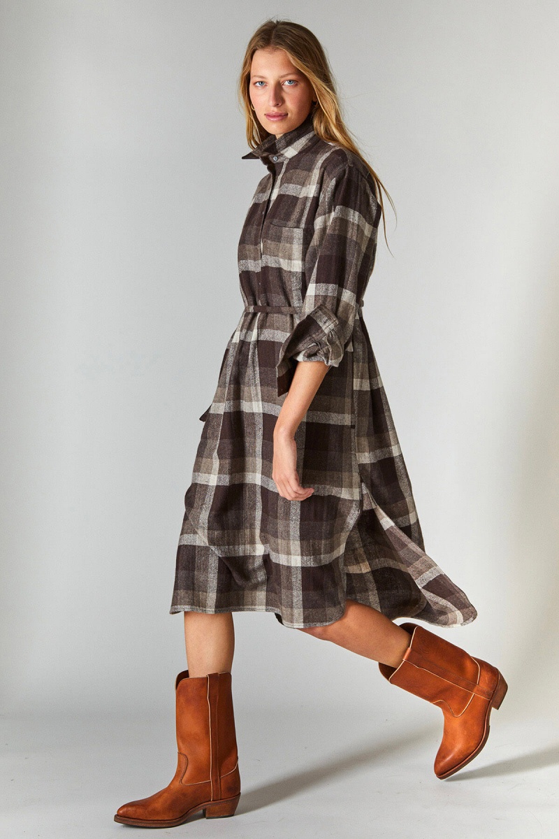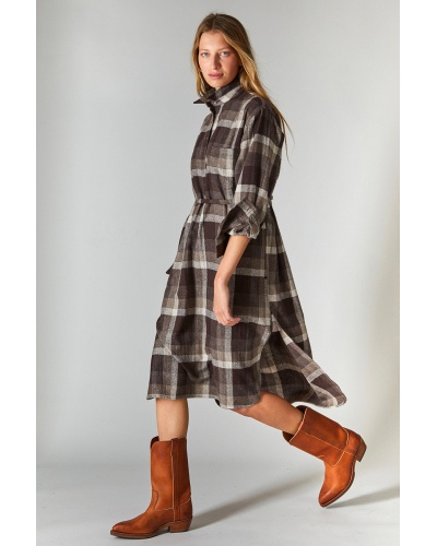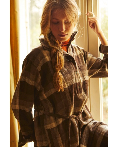 The Orlia dress is made from a blend of wool, polyester and cotton, ensuring both warmth and comfort. The dress has a classic cut with a shirt collar and buttoned sleeves, giving it a natural elegance that blends harmoniously with its material. Let yourself be seduced by this dress, which is both unique and casual. It's infinitely versatile, combining a classic cut with details that soften the look.