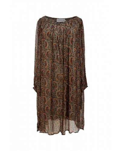 Art dye maxi dress . Wide cut . V-neckline with tie . 3/4 sleeves . Side italian pockets . Side slits . Removable belt One size...