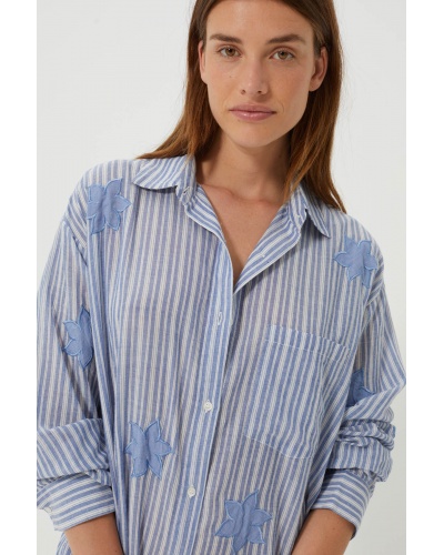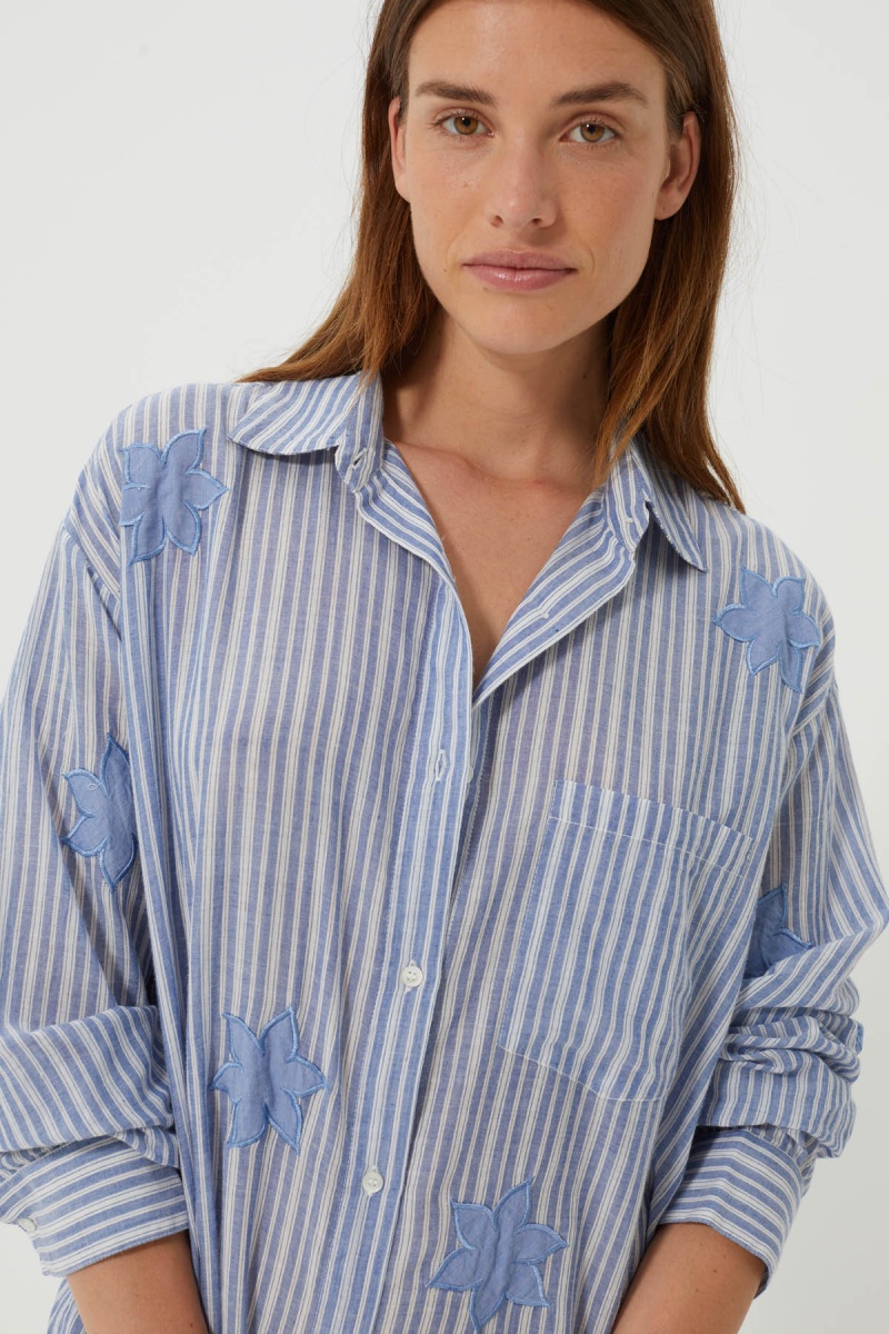 A classic cut from Charlie Joe, reinterpreted this season in light, soft cotton, a stripe pattern combined with delicate embroidery.