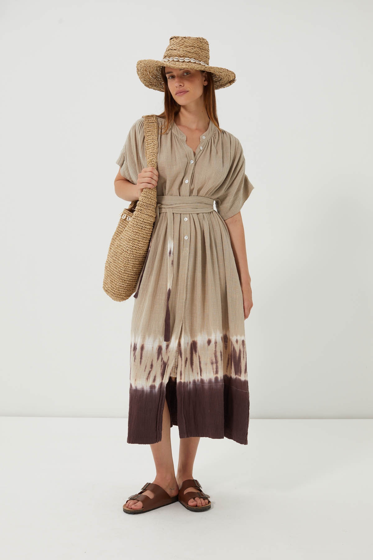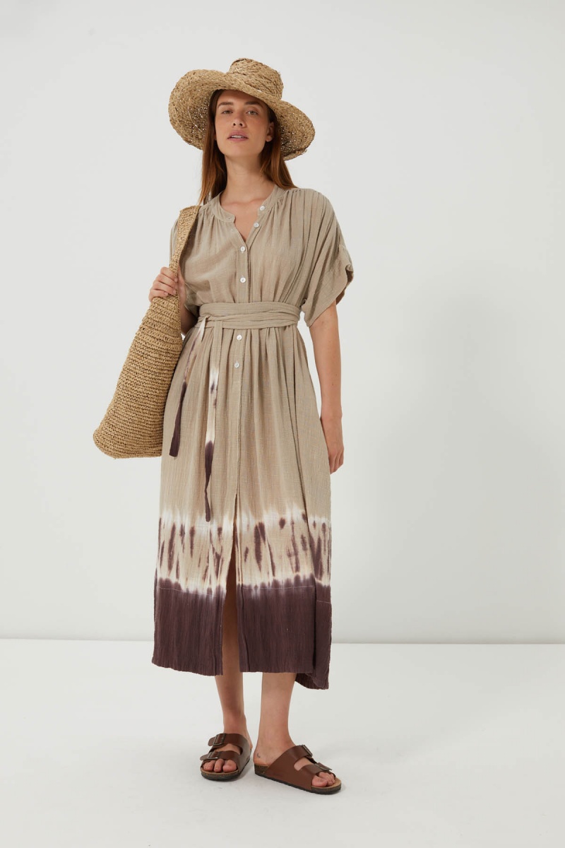 The Muraya dress is an invitation to travel, with its subtle tie & dye and loose-fitting cut that enhances every figure.