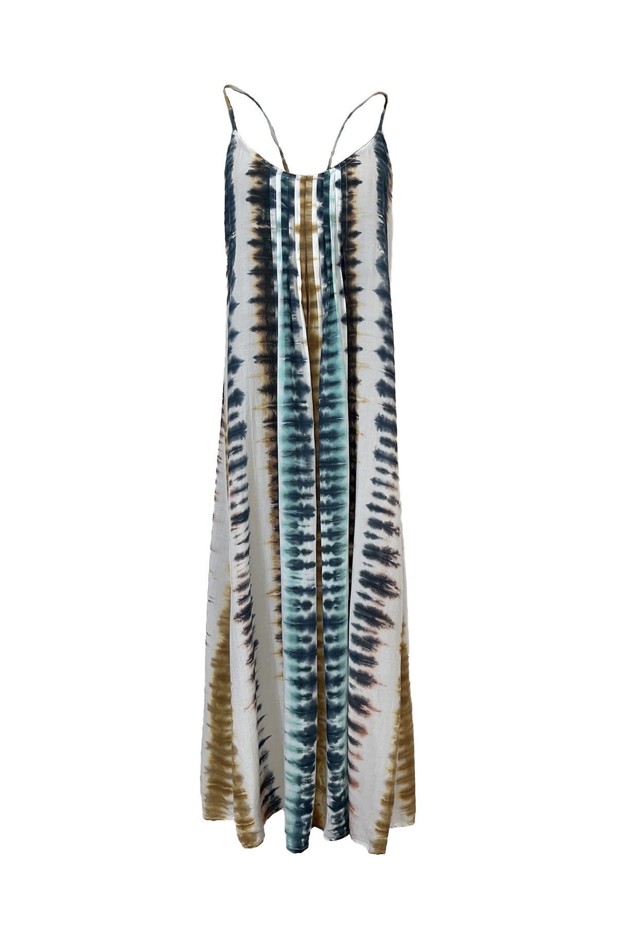 The Saison dress captivates with its long, flowing silhouette, enhanced by a delicate tie-dye pattern. Made from a lightweight, comfortable fabric, it moves gently with you and offers a feeling of absolute freedom.
