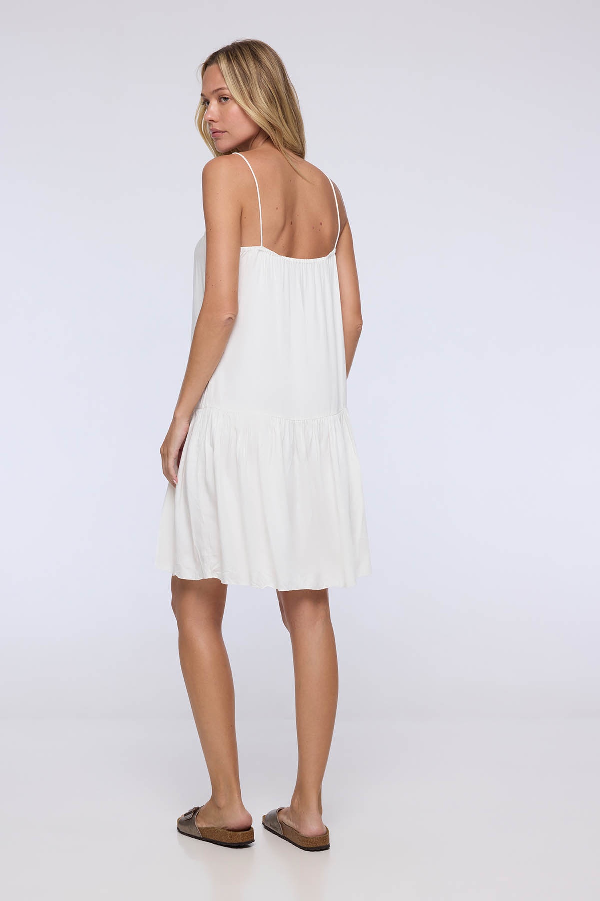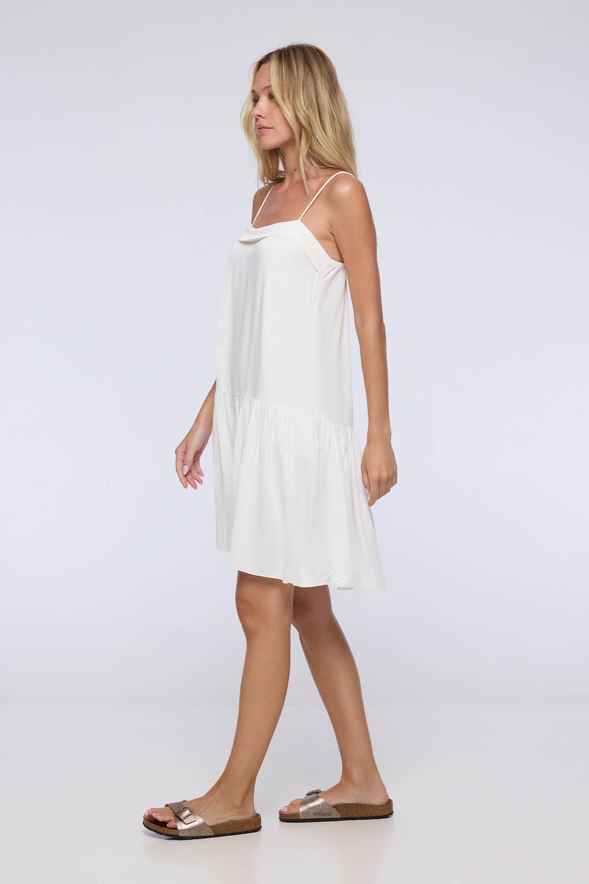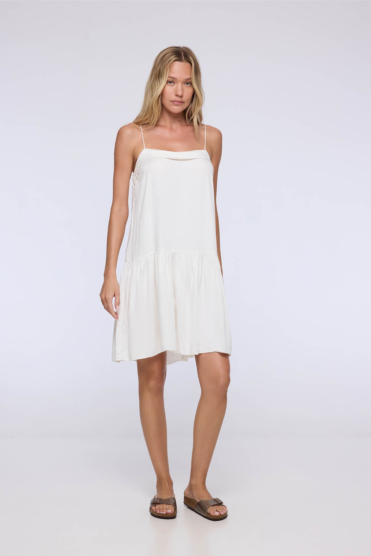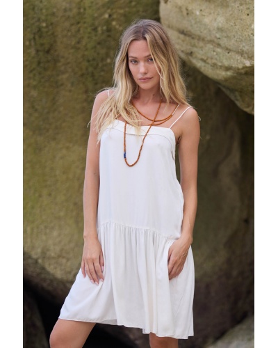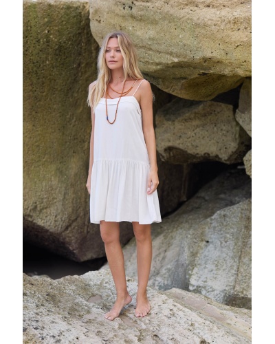 The Enma dress embodies lightness and minimalist elegance. With its flowing cut and thin straps, it delicately reveals the shoulders for a feminine and natural silhouette.