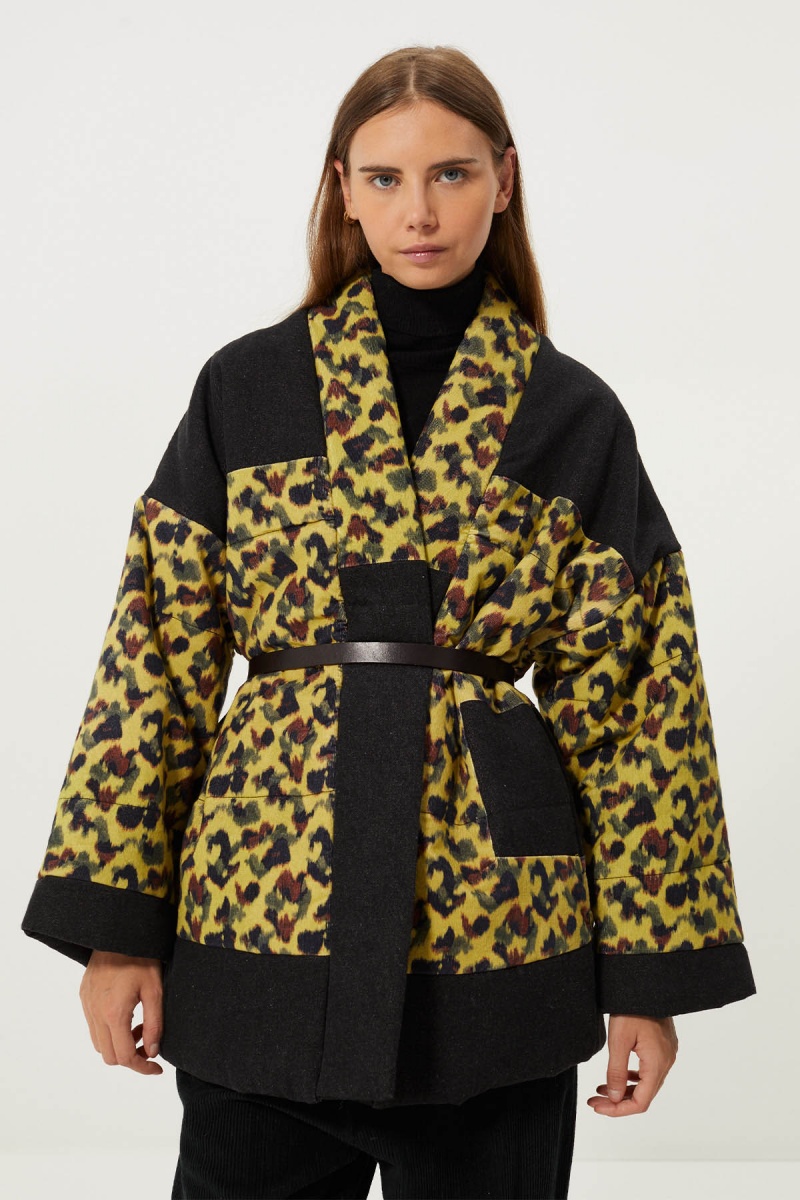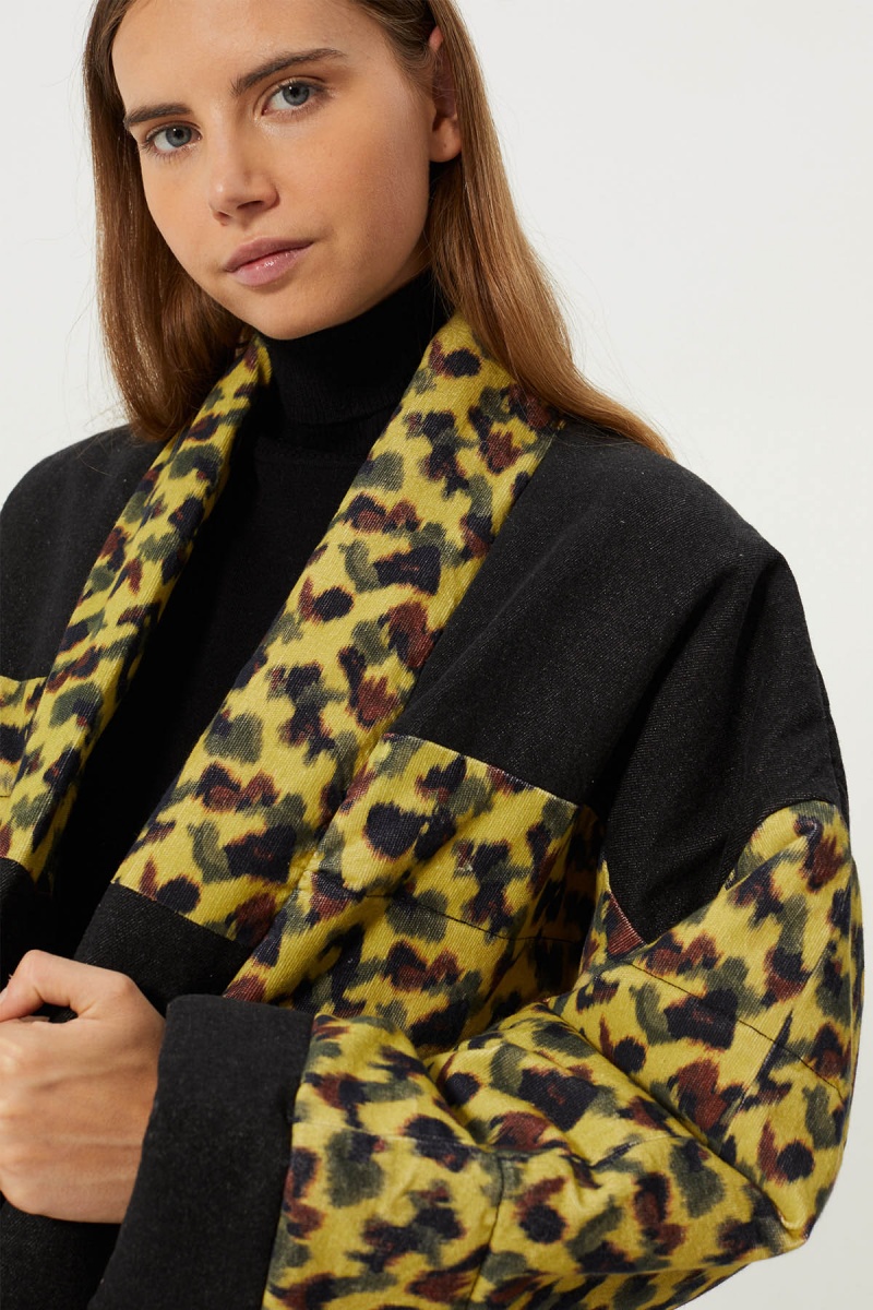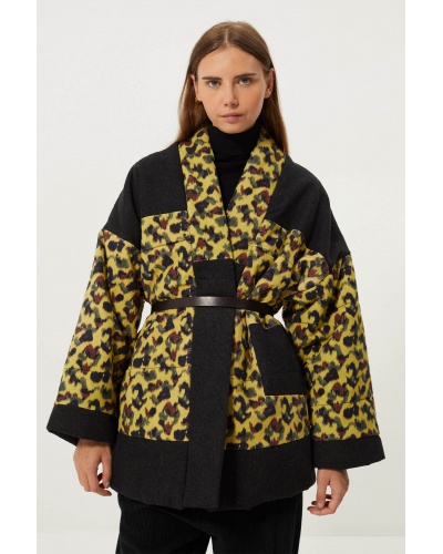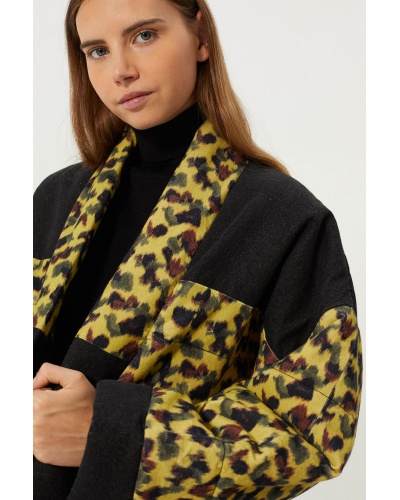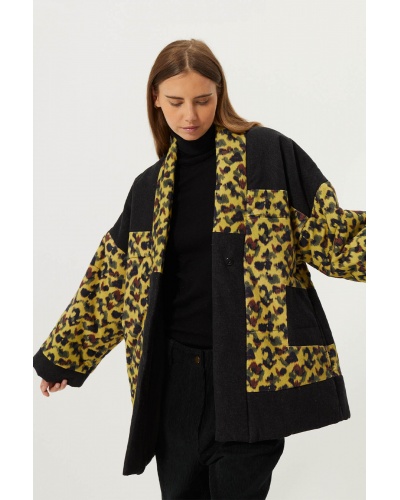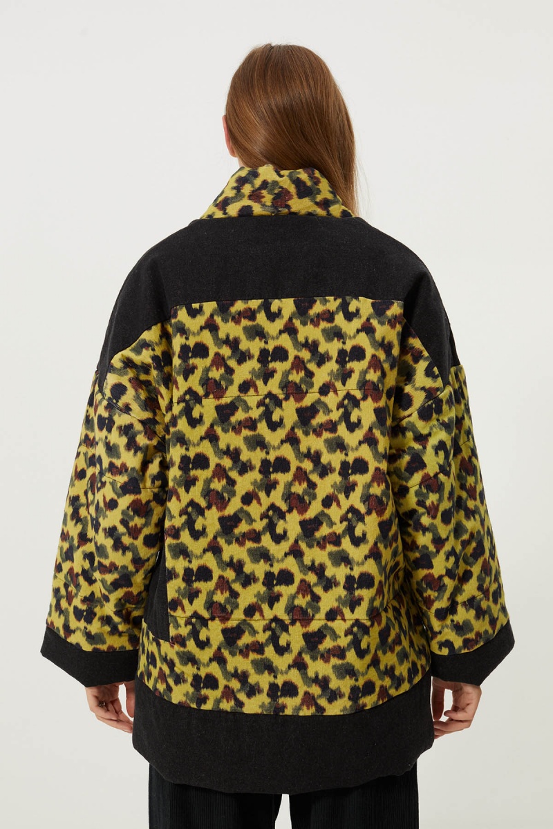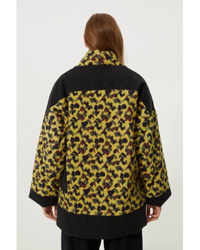Soft faux fur jacket . Oversized cut . High collar . Button fastening on collar and front . Long sleeves with adjustable button cuffs ....