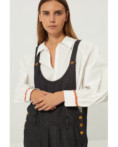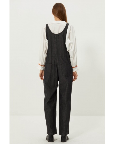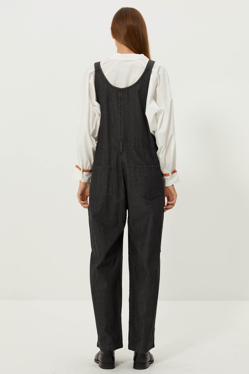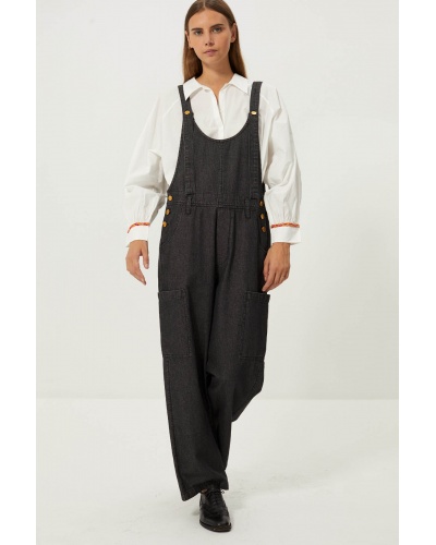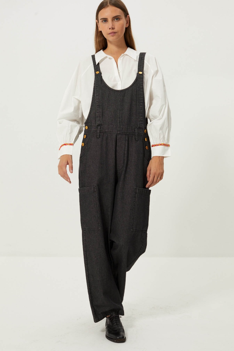Discover the Lavina dungarees, crafted in fine black denim, this piece combines comfort and practicality thanks to its loose fit and functional details.