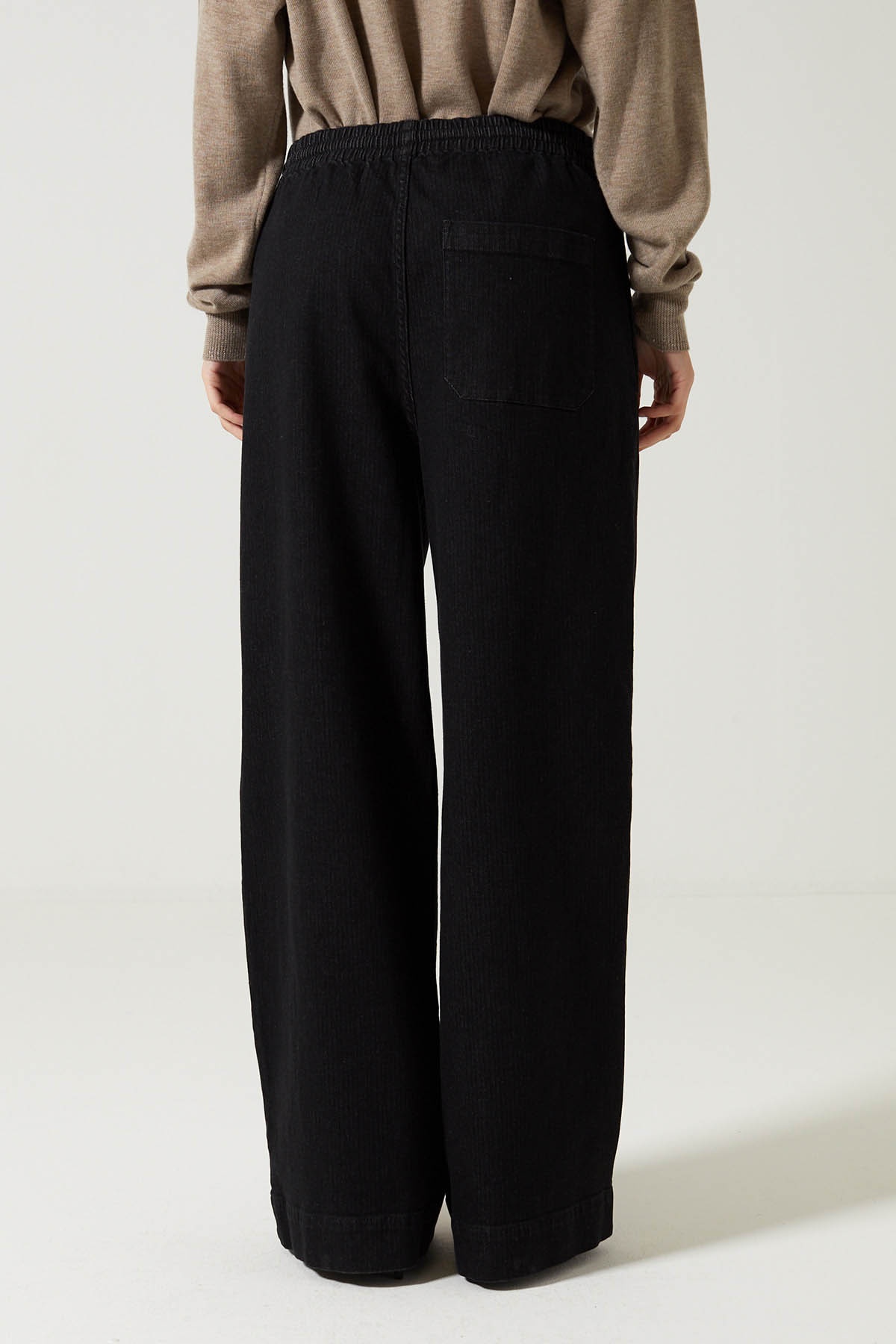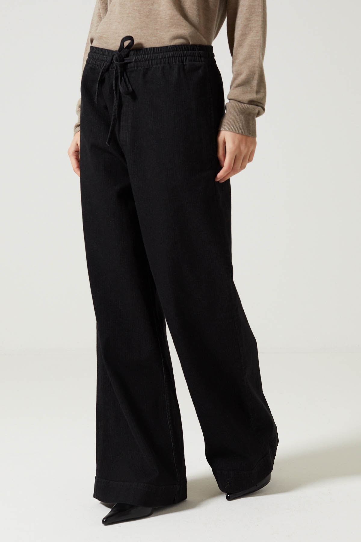 The Lola trousers are this season's must-have casual trousers. Made from soft denim, they feature an ultra-comfortable straight, loose fit and an elasticated waistband with drawstring for an effortless, tailored look.