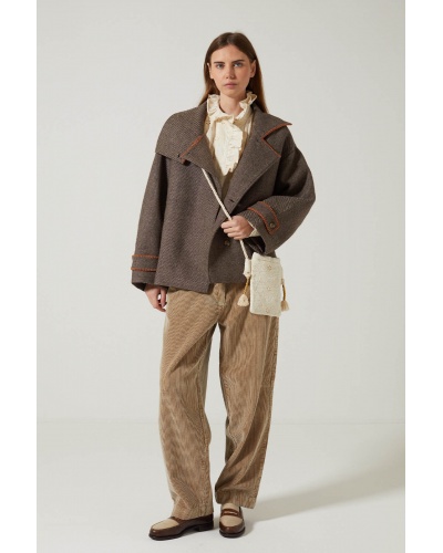 Brown wool jacket with embroidery