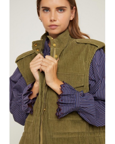 As practical as it is stylish, the Fiona jacket is distinguished by its elegant kaki velvet and its original cut. For a more feminine touch, this jacket can be adjusted at the waist thanks to its drawstrings.