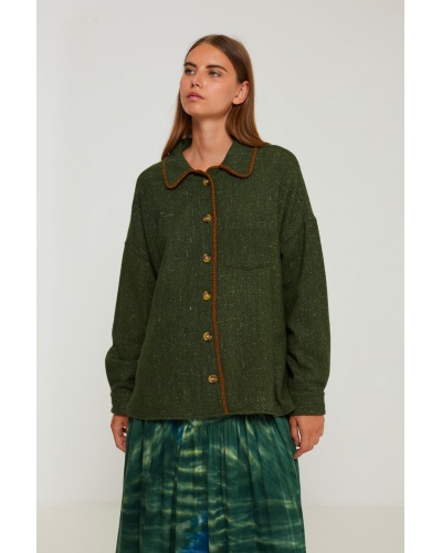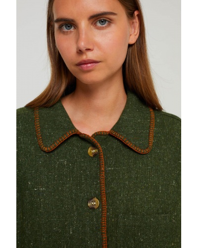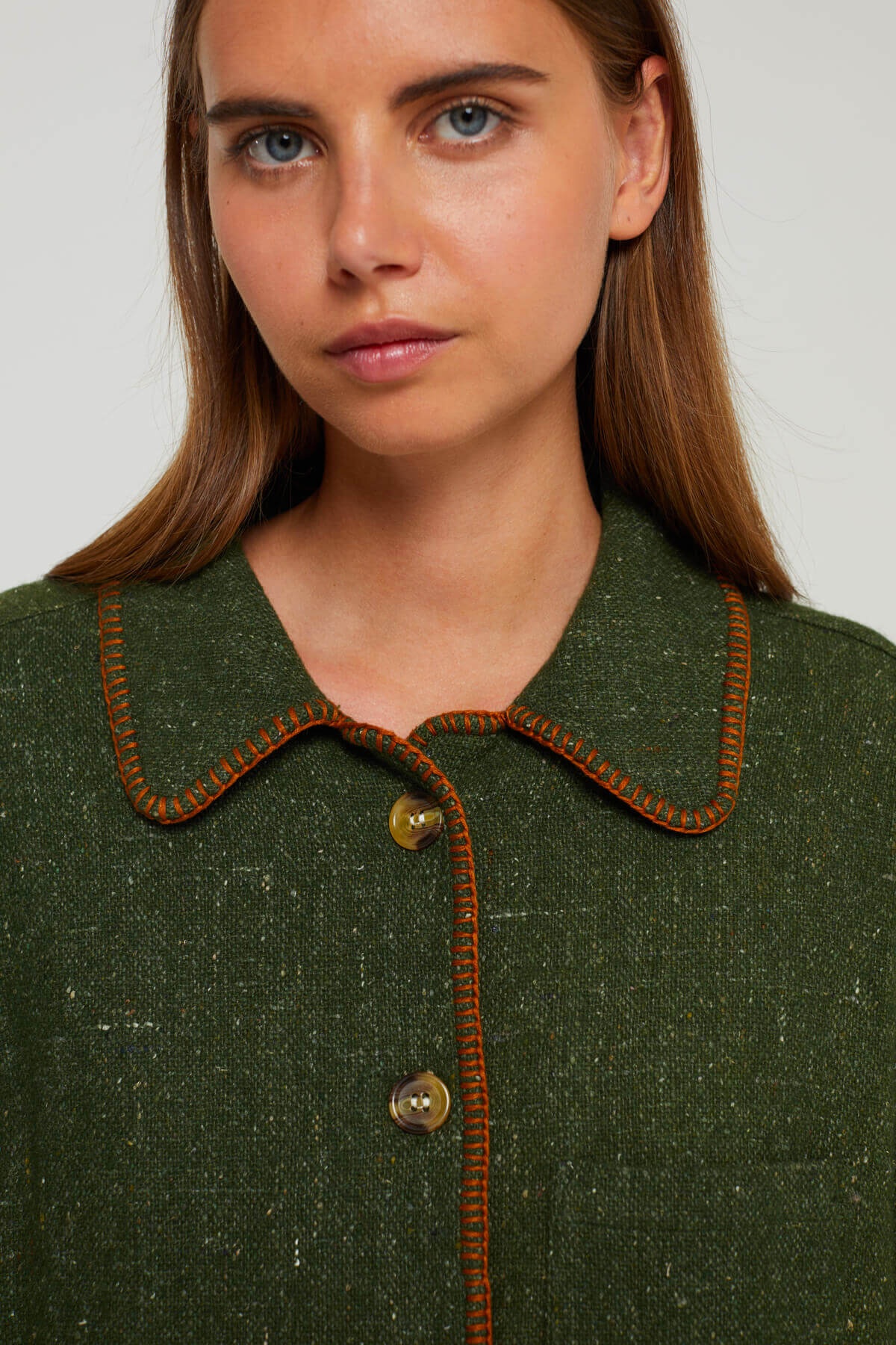 The Loli jacket is a perfect marriage of comfort, style and originality. This shirt-like jacket is designed to be versatile, while adding a unique touch to your outfit. With its blend of wool and polyester, and orange embroidery along the collar and placket, it embodies elegance and individuality.