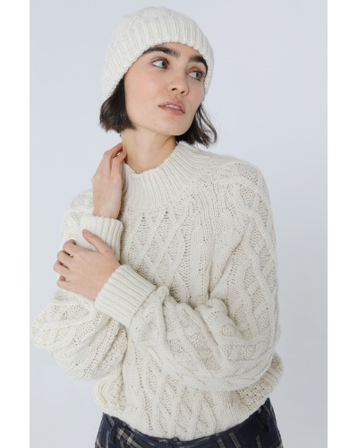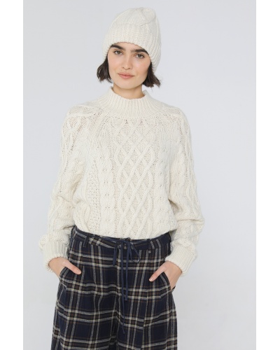 The Basile ecru sweater is knitted in the marine spirit with twisted patterns in relief.
