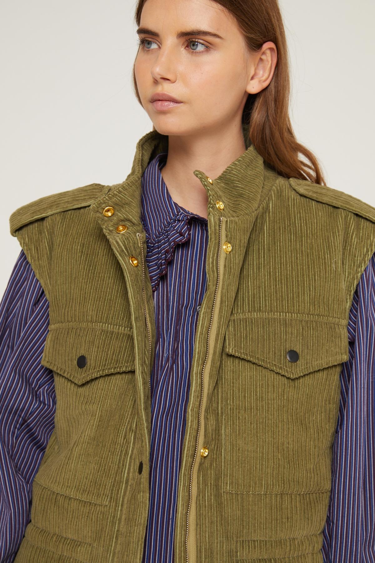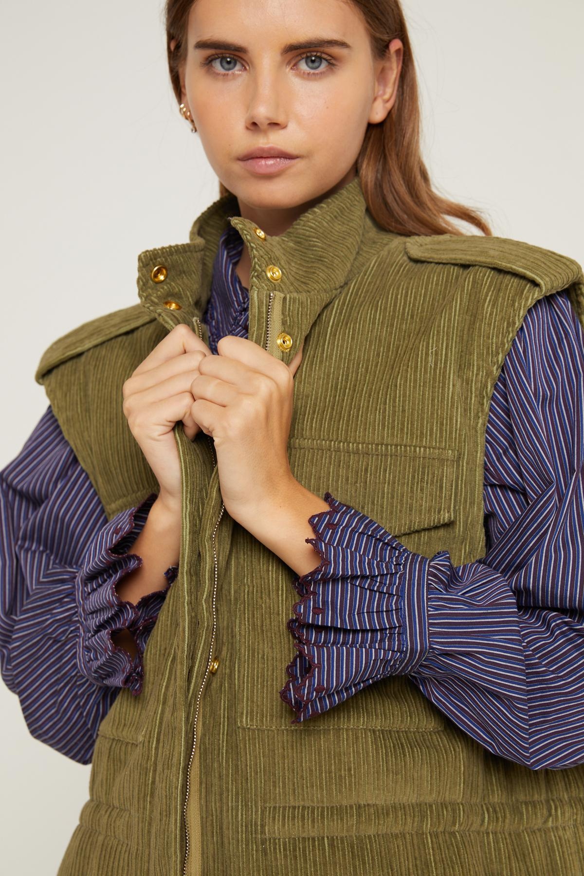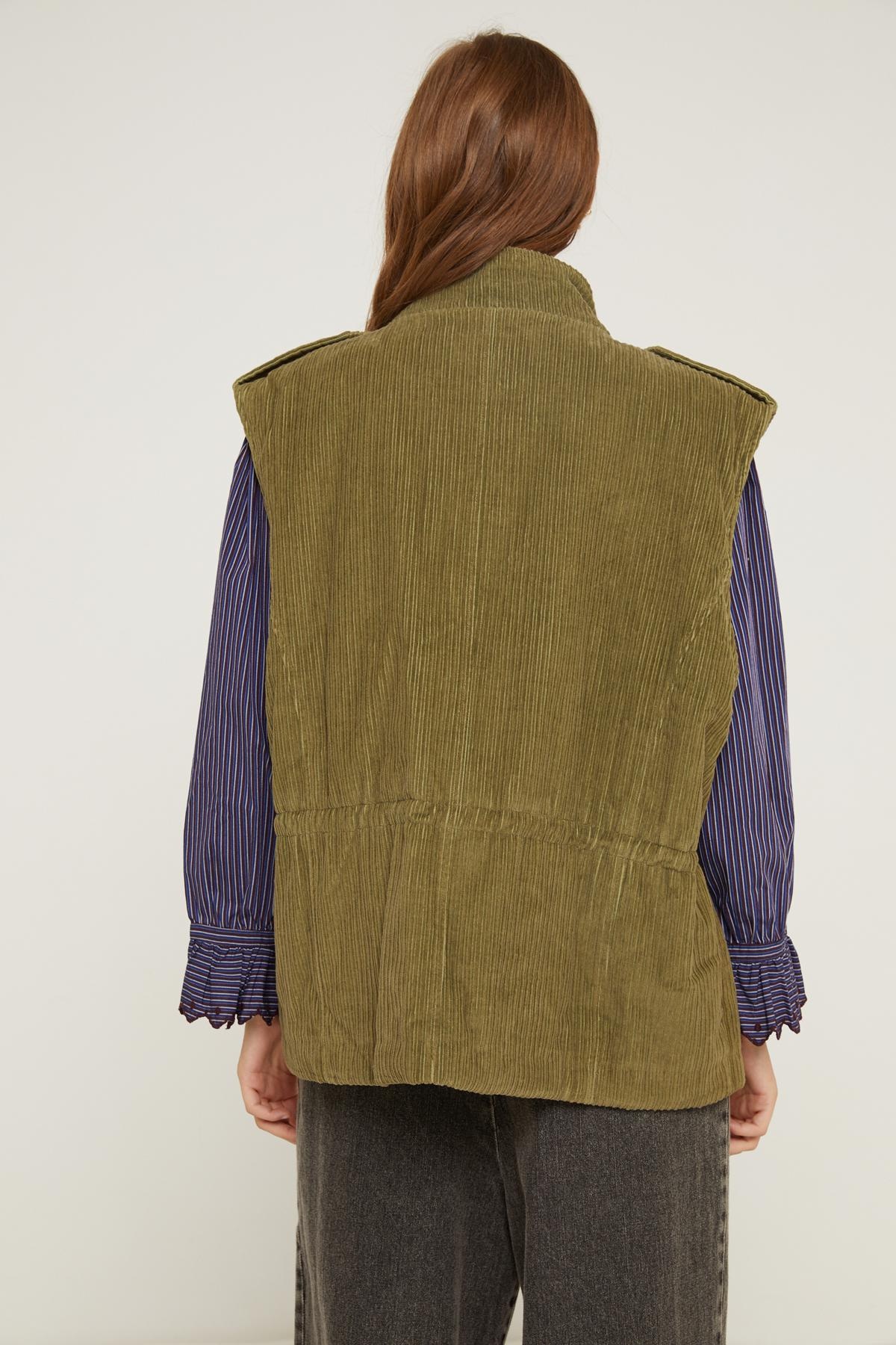 As practical as it is stylish, the Fiona jacket is distinguished by its elegant kaki velvet and its original cut. For a more feminine touch, this jacket can be adjusted at the waist thanks to its drawstrings.