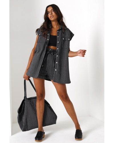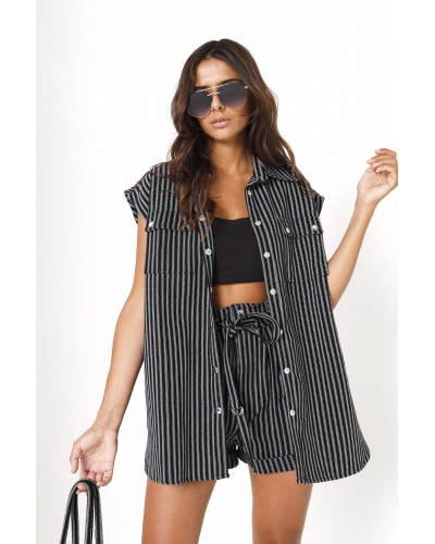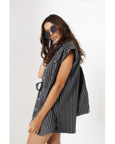 The Elisabeta jacket is distinguished by its relaxed fit and fine white stripes. Wear it with the matching shorts.