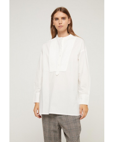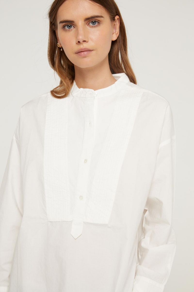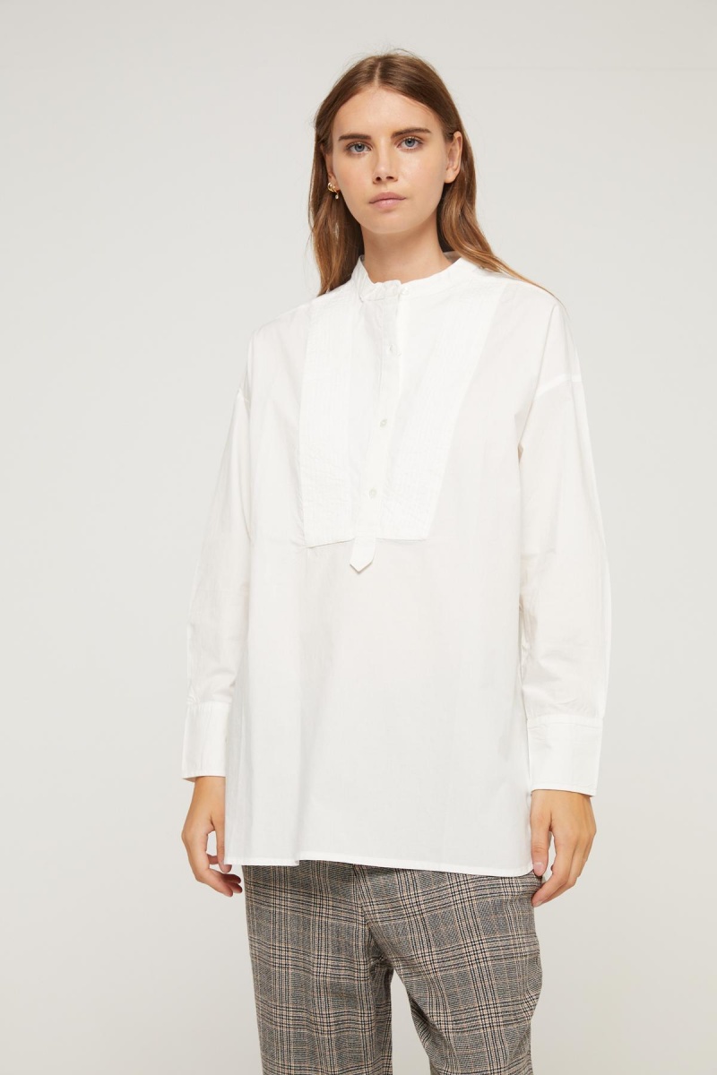 Discover our white Arthur blouse, a timeless basic that goes with anything. Layer it with a sleeveless jumper and jeans for a classic casual look.