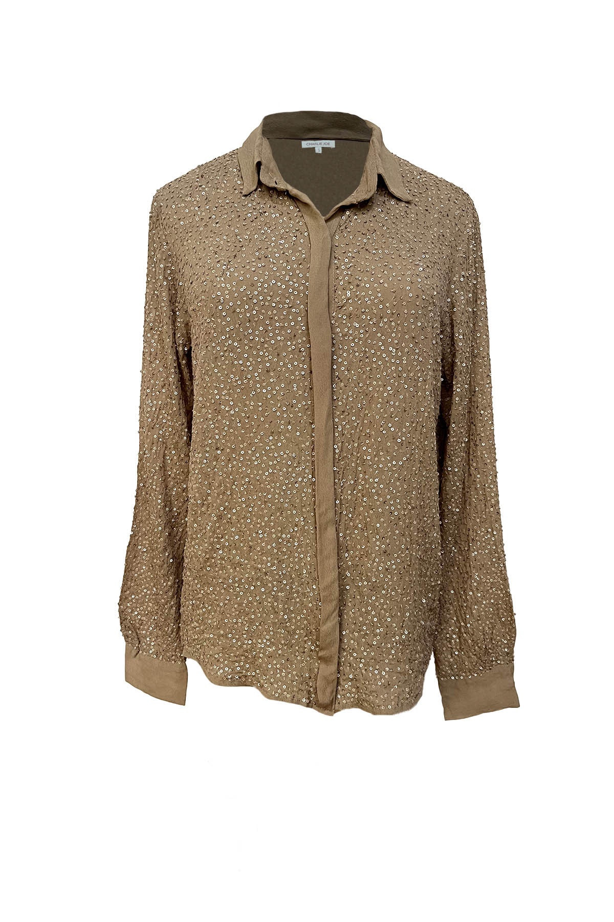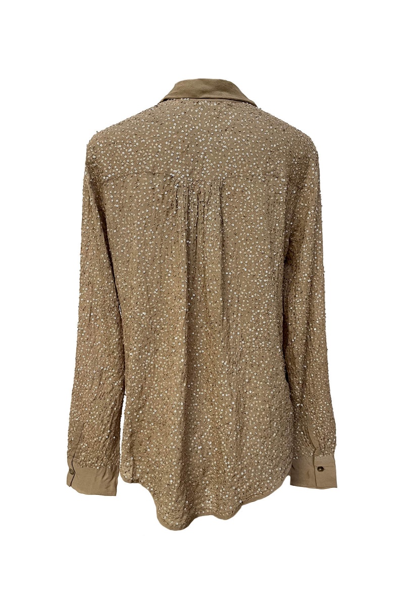 Entirely embroidered with sequins, except on the collar, button placket and cuffs, it will add a touch of sparkle to all your outfits.