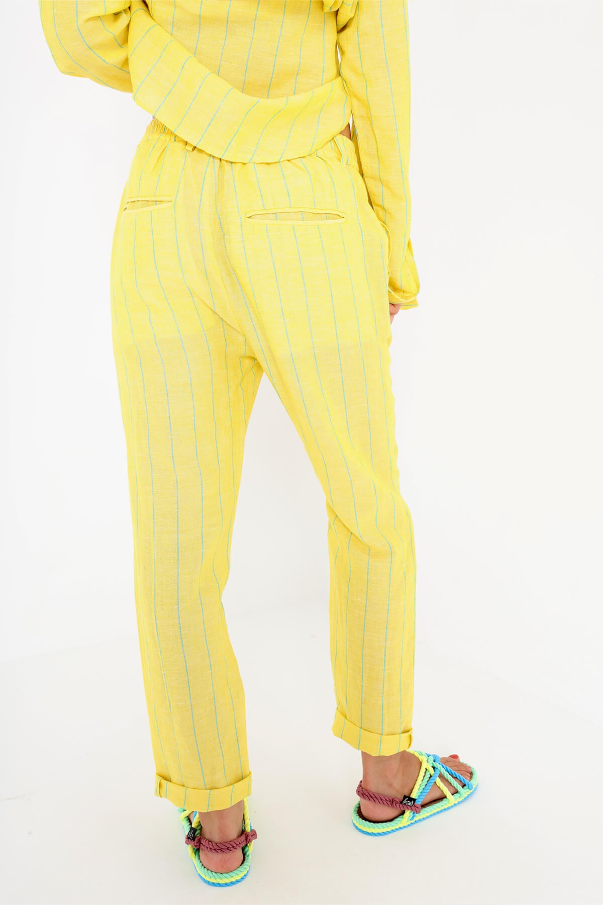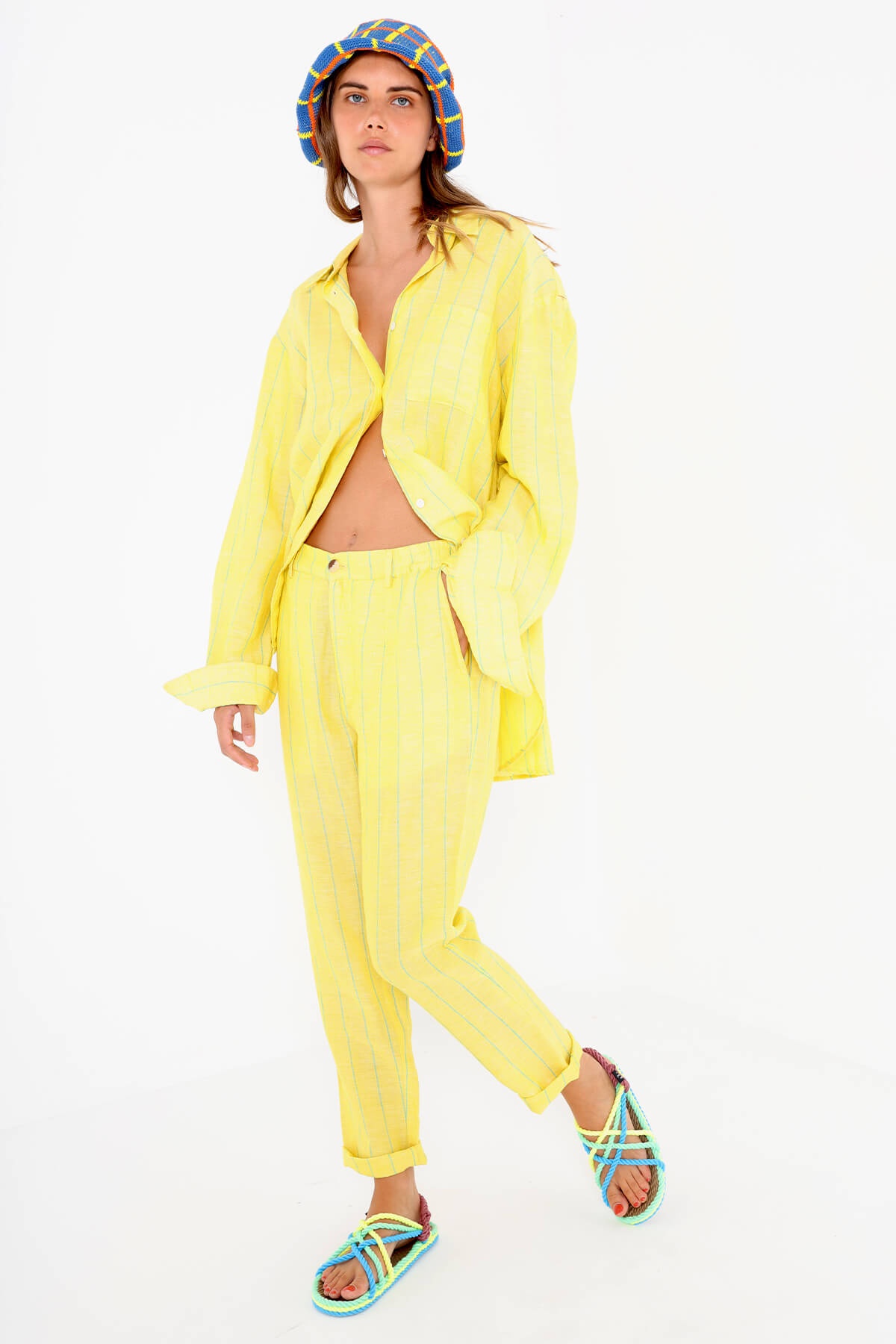 The Katiel trousers can be worn as a total look or with a plain piece of clothing, white or in the same colours. Made of a cotton and linen blend, they are a perfect thermoregulator that juggles warmth and coolness. Don't hesitate any longer!