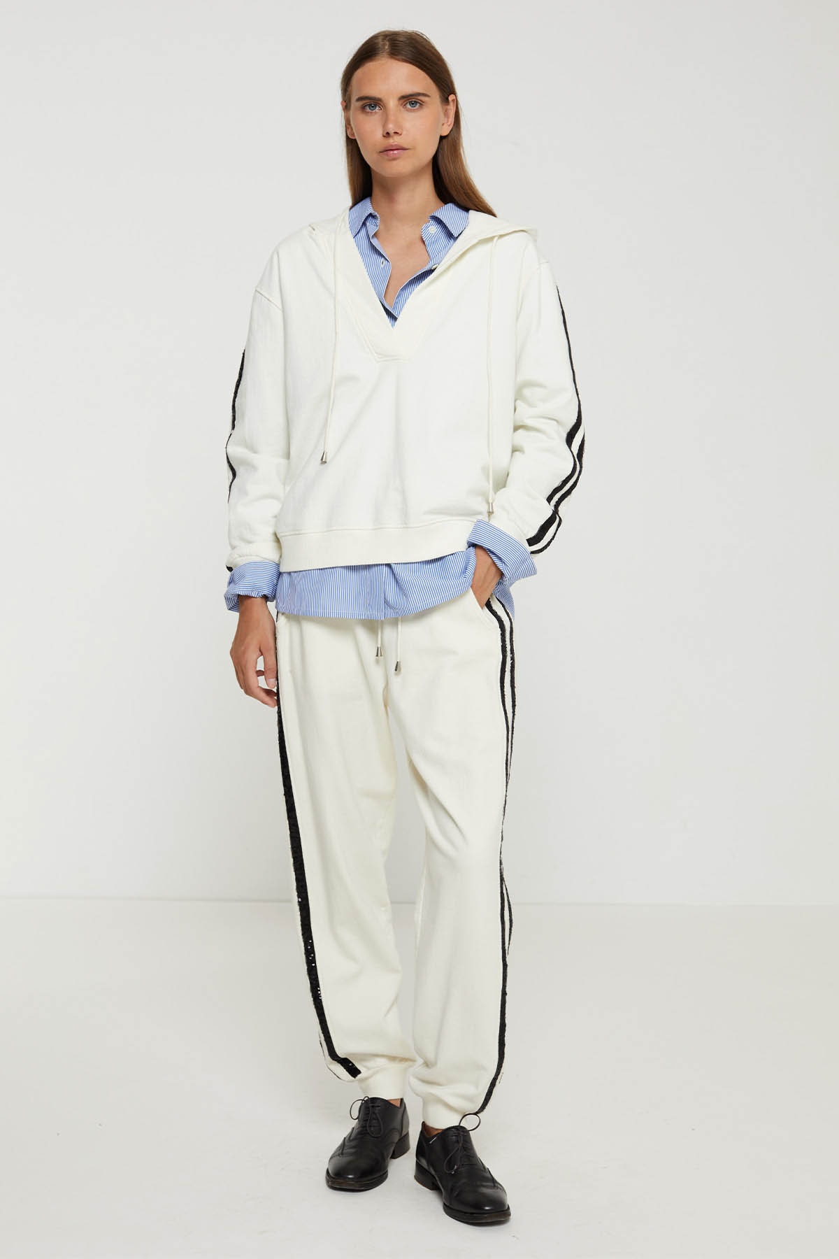 Discover the Keira jogging suit, a fusion of casual comfort and style. Tightened ribbing at the ankles adds a modern touch, while the two black sequin stripes offer a sporty, on-trend look.