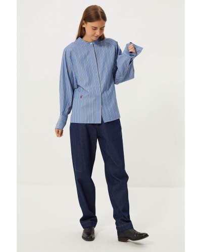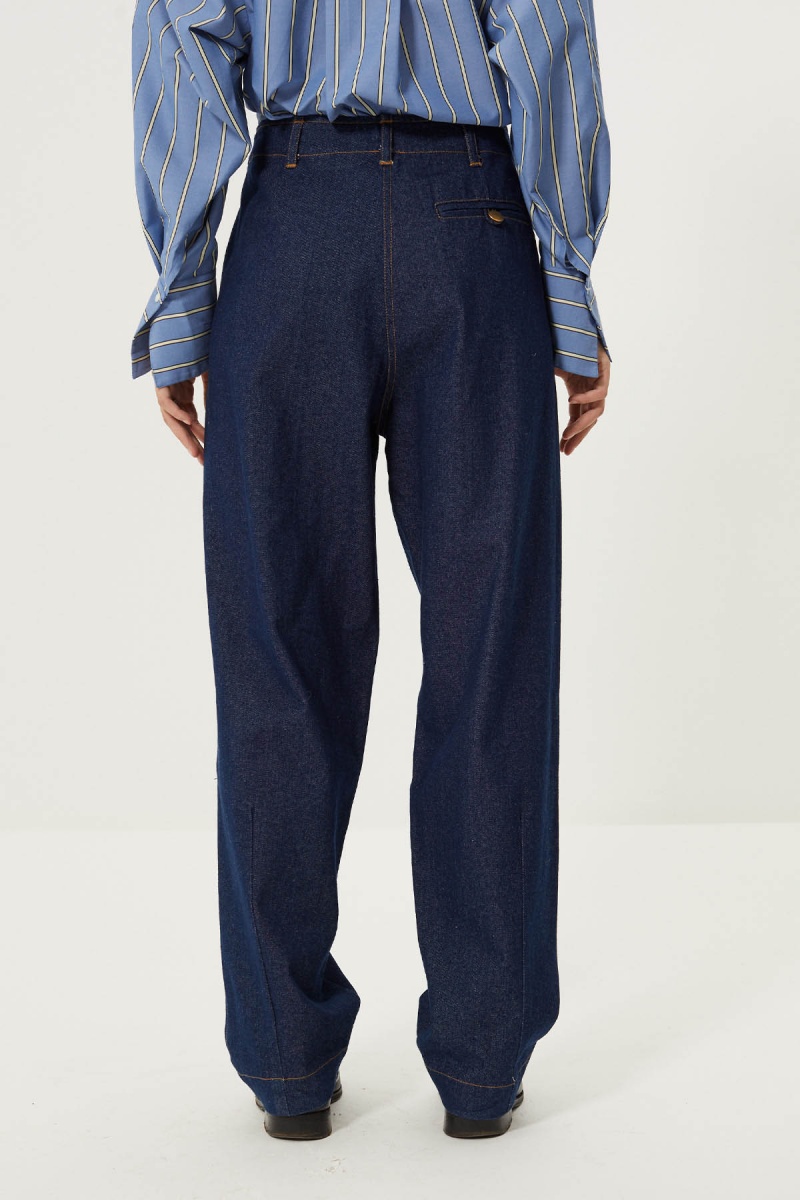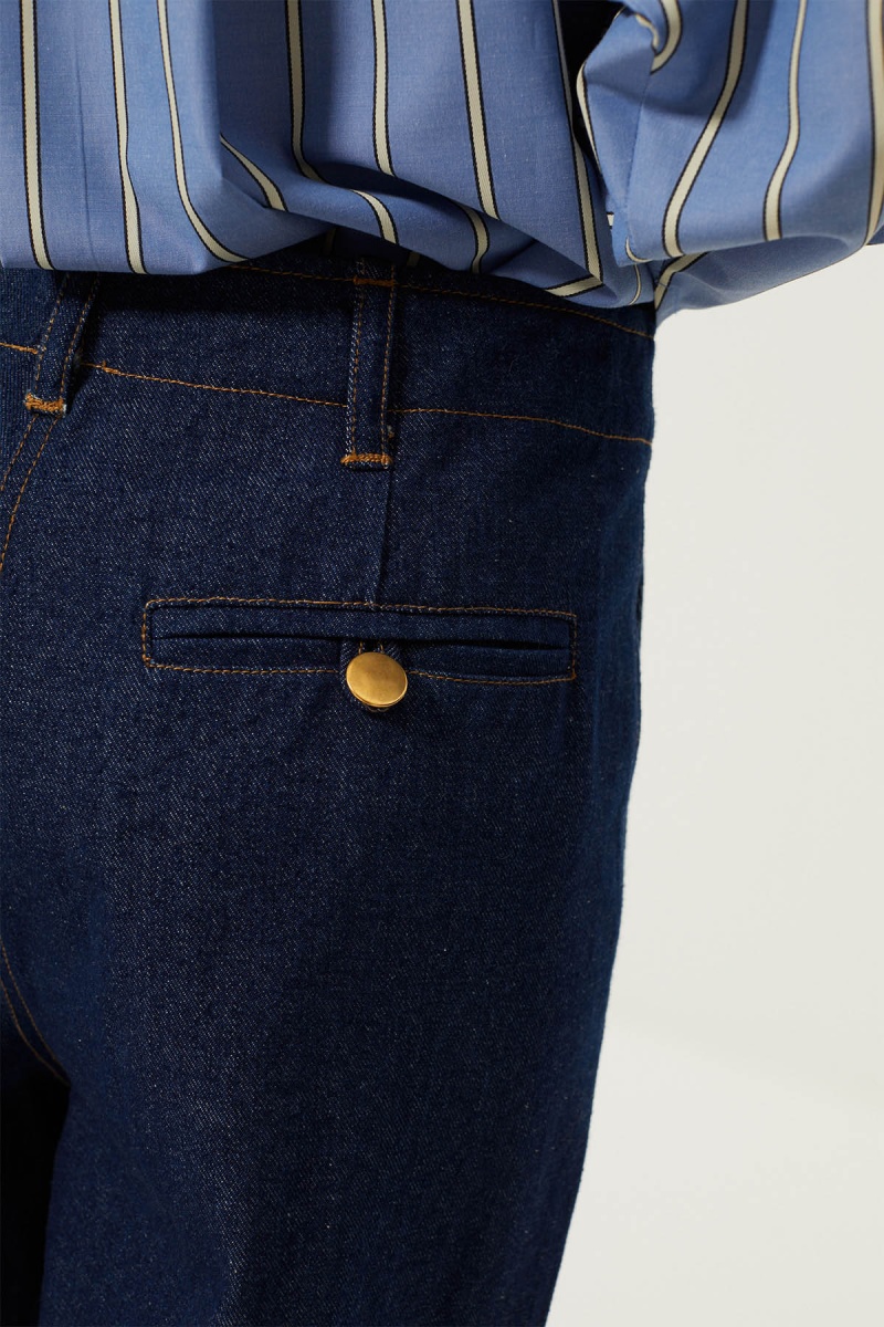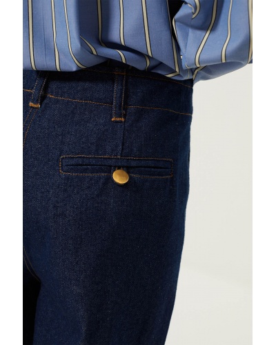 Let yourself be seduced by the Fosca trousers, a one-piece in raw denim.