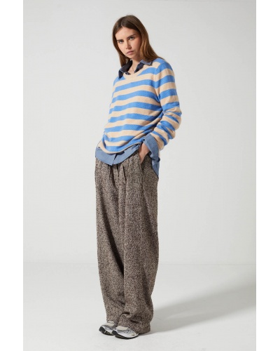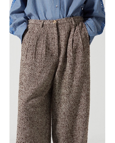 Crafted from soft, textured tweed, the Lysie trousers reinterpret tailoring with a casual twist. Their wide, flowing cut is balanced by a defined waist and stitched pleats at the front, creating a loose silhouette without compromising on structure.