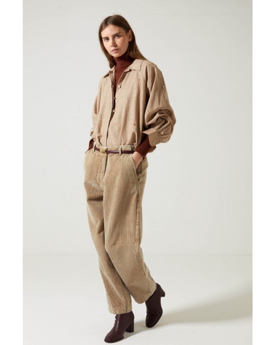 With their straight cut and mid-rise waist, the Siloe trousers revisit corduroy in a style that is both retro and contemporary. Comfortable without sacrificing style, they stand out for their meticulous details: discreet side pockets, a slightly structured leg, and a perfect drape.