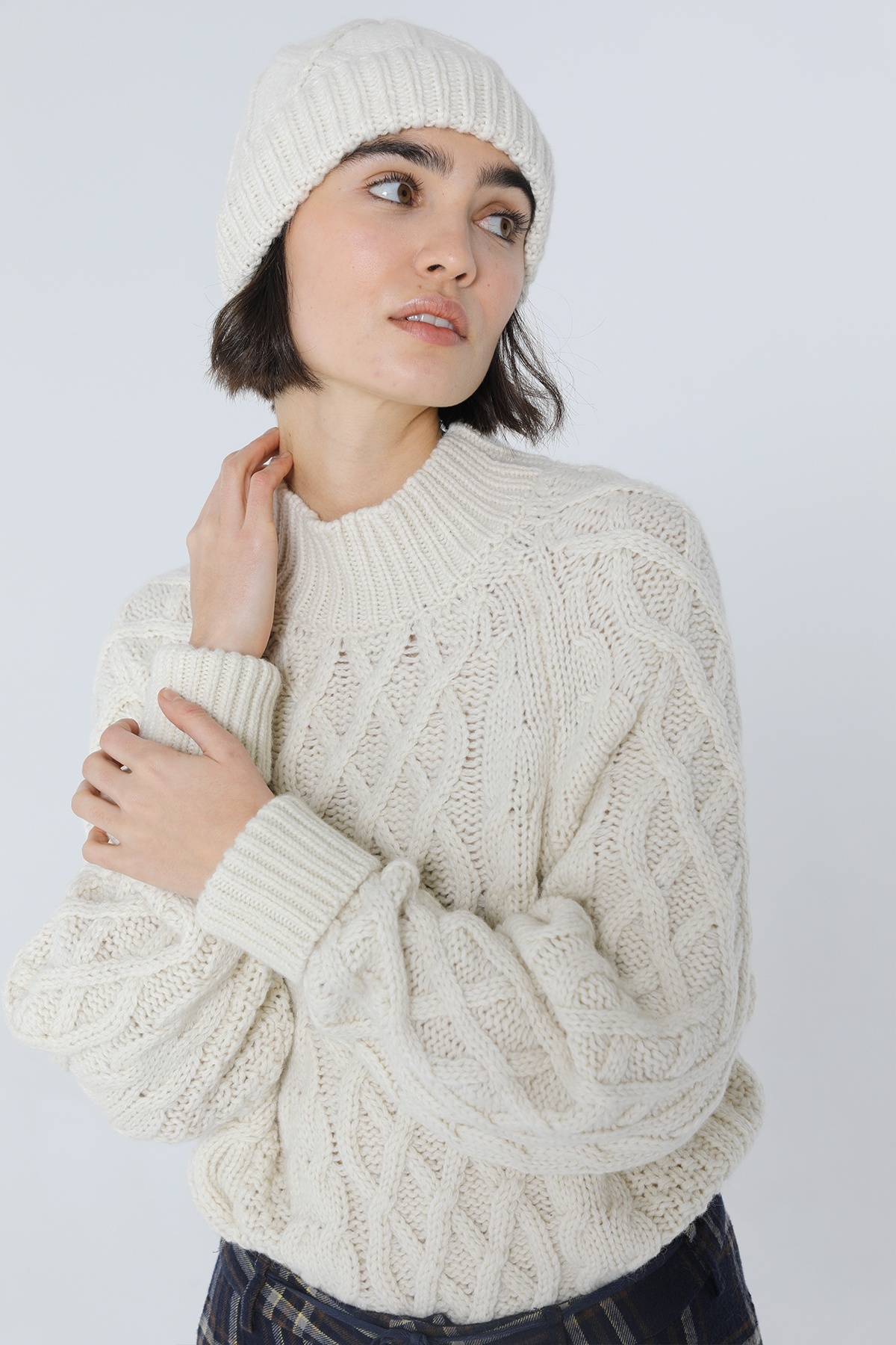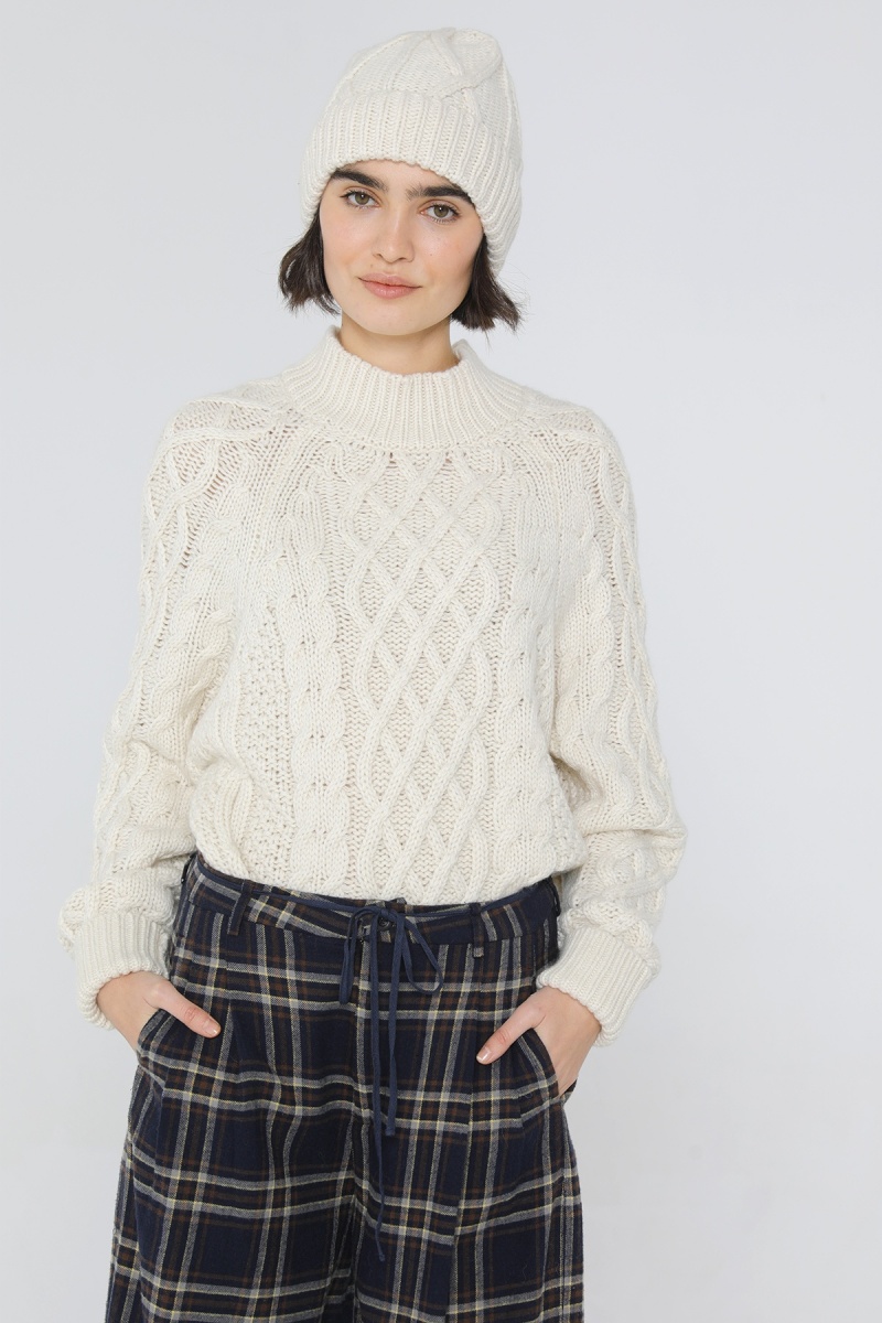 The Basile ecru sweater is knitted in the marine spirit with twisted patterns in relief.