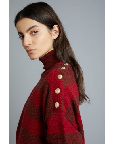 Crafted in a loose fit, this sweater ensures casual comfort while offering a sophisticated look. The distinctive detail is the gold buttonhole on the left shoulder, adding a touch of elegance. The Zita sweater is a versatile piece that brings a touch of color and modernity to your wardrobe.
