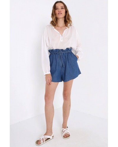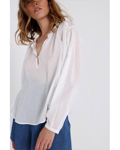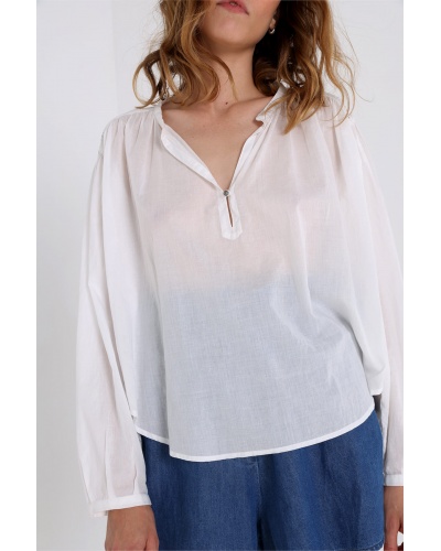 The Amilly blouse is a must-have in your wardrobe, its light material and loose fit make it a comfortable and feminine piece. White blouse par excellence, all associations are allowed!