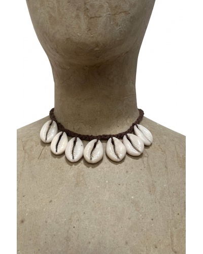 With its seashells tied onto a braided cord, the Yen necklace embodies a natural, authentic aesthetic. Its assertive design is worn close to the neck, for a natural, confident touch.